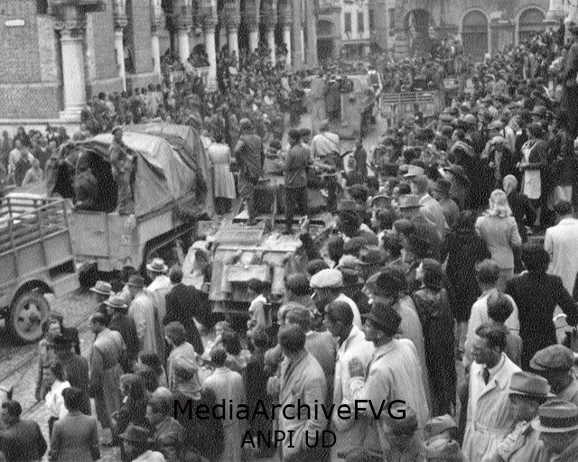 Mezzi corazzati alleati in piazza Libertà