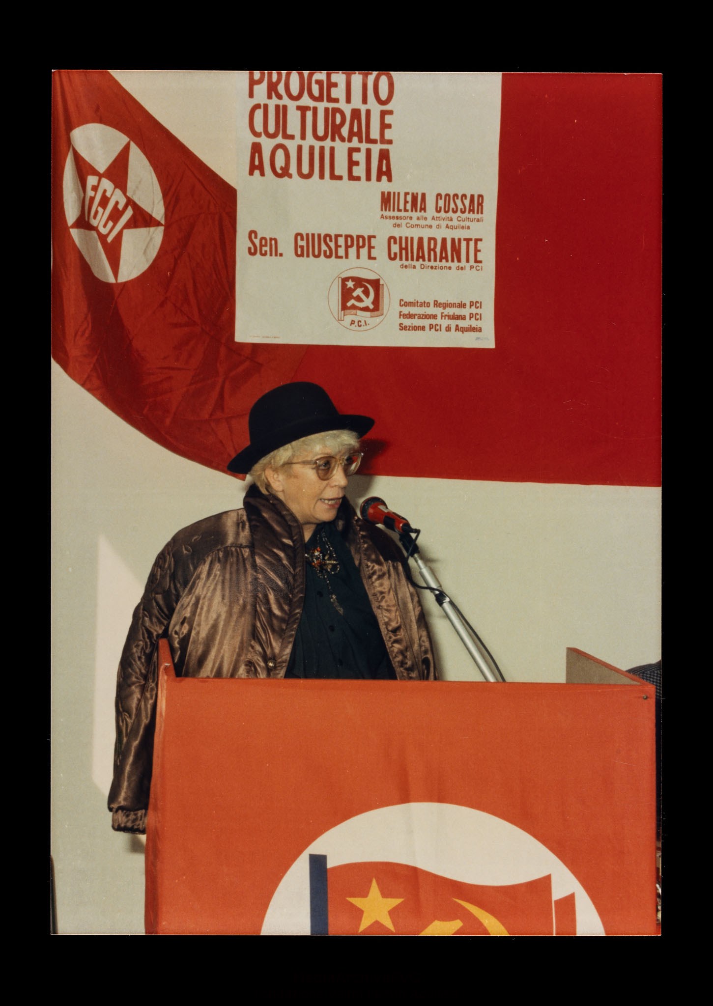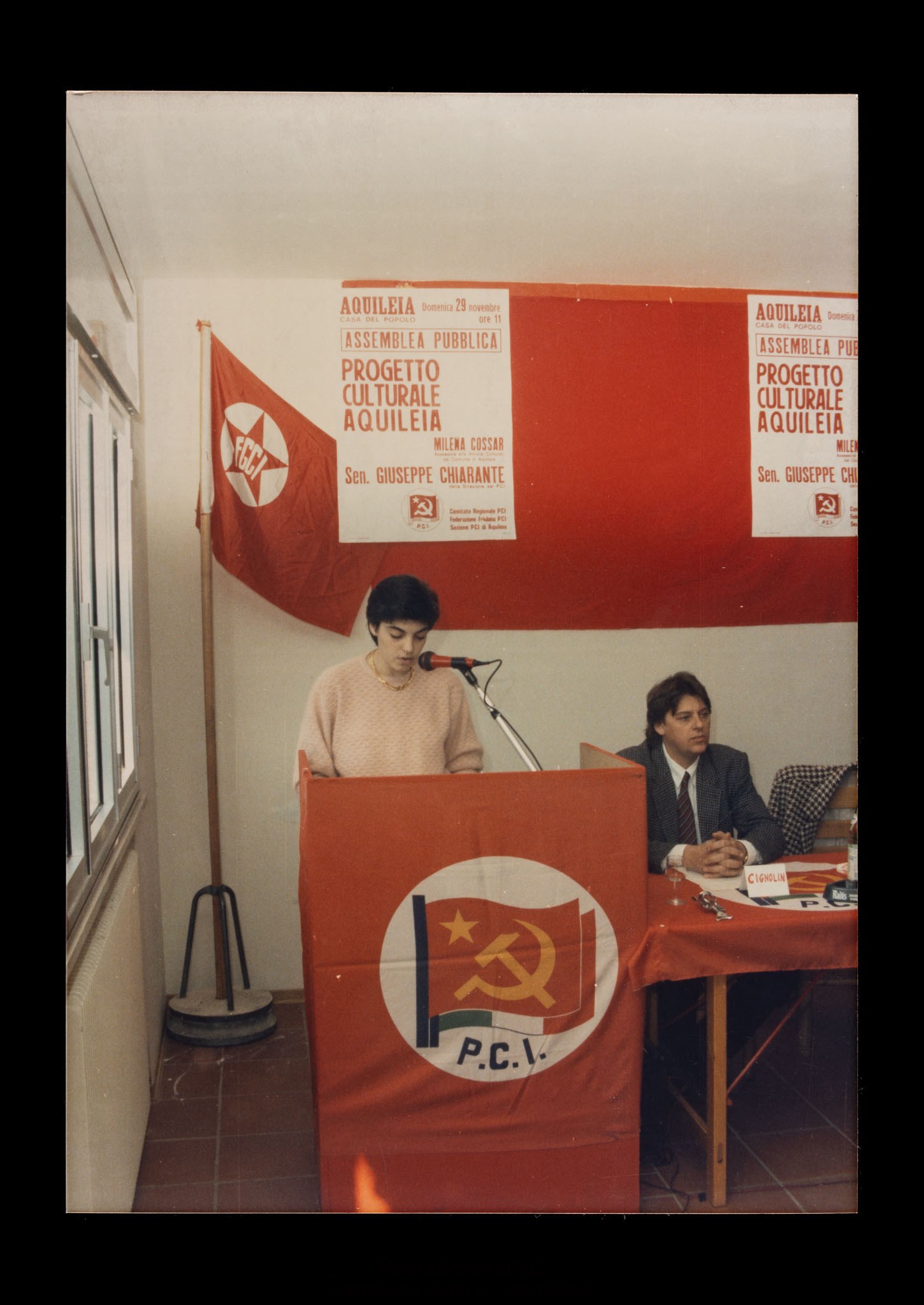 Assemblea pubblica "Progetto culturale Aquileia", promossa dal Comitato regionale del PCI, dalla Federazione friulana del PCI e dalla Sezione del PCI di Aquileia. Intervento di Milena Cossar, assessore alla cultura del Comune di Aquileia