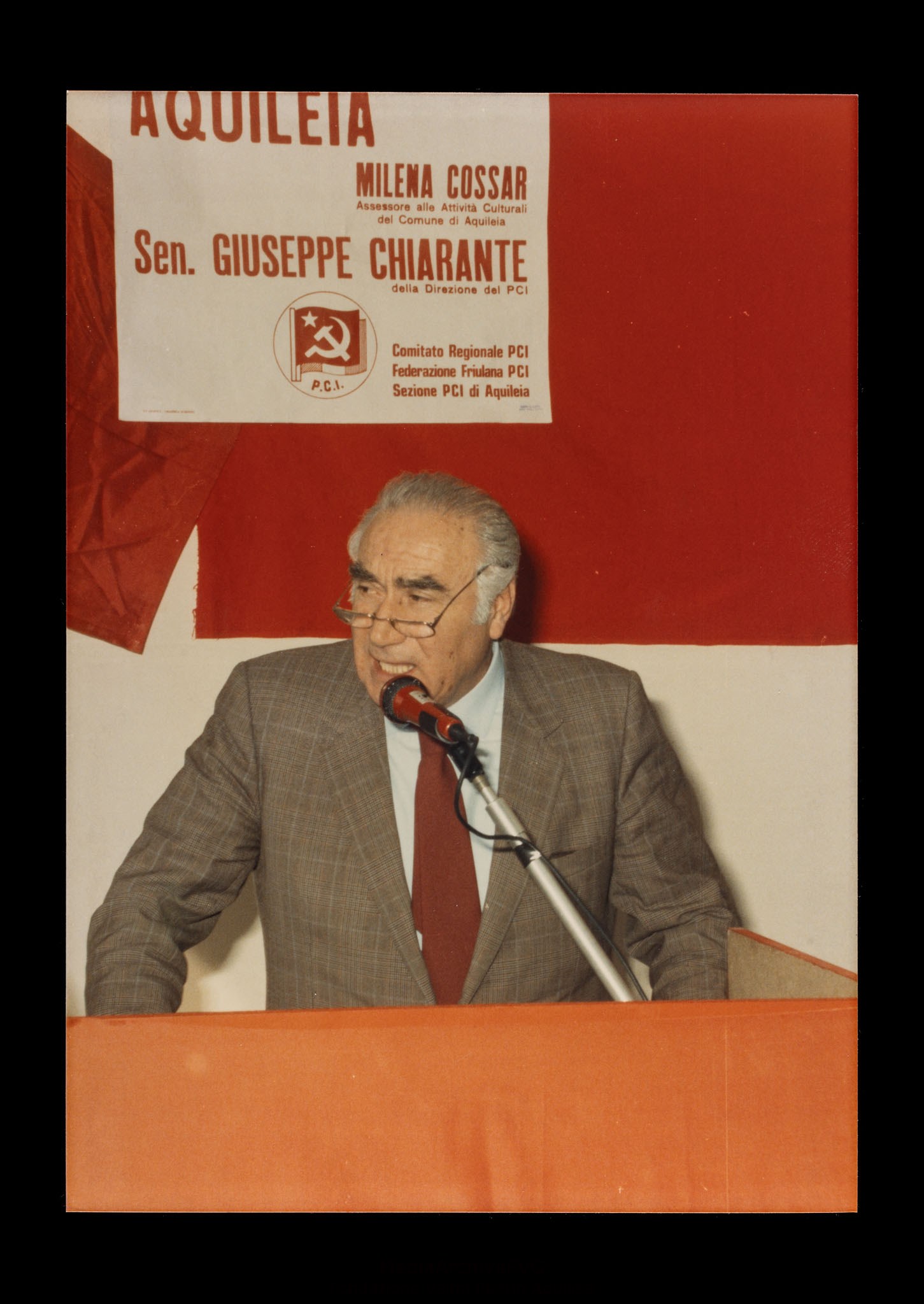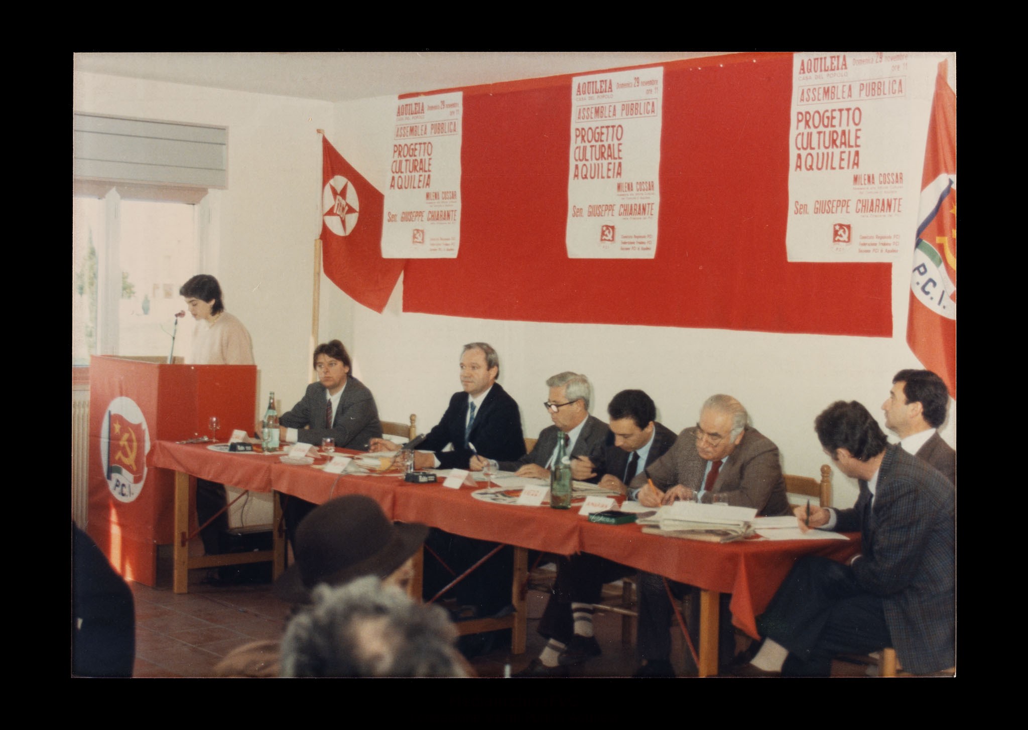 Assemblea pubblica "Progetto culturale Aquileia", promossa dal Comitato regionale del PCI, dalla Federazione friulana del PCI e dalla Sezione del PCI di Aquileia. Il senatore Giuseppe Chiarante