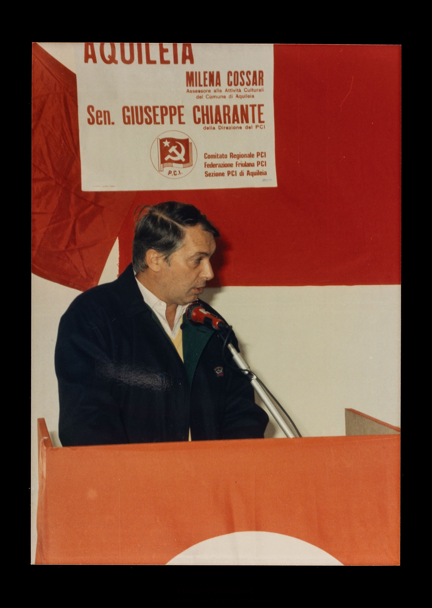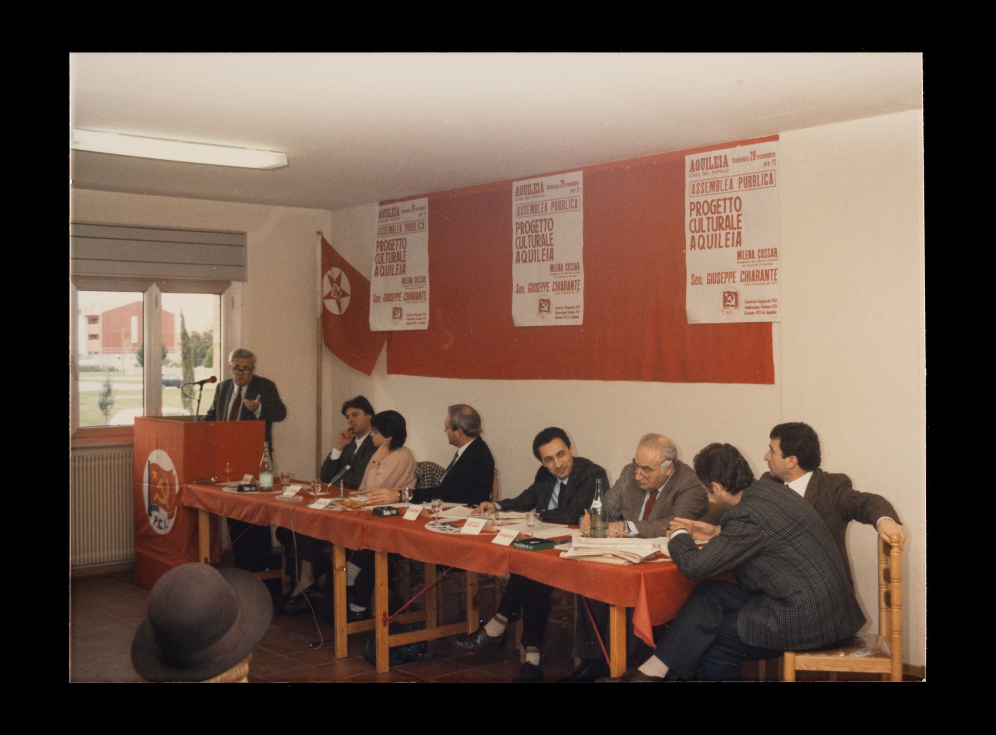 Assemblea pubblica "Progetto culturale Aquileia", promossa dal Comitato regionale del PCI, dalla Federazione friulana del PCI e dalla Sezione del PCI di Aquileia. Intervento del senatore Giuseppe Chiarante