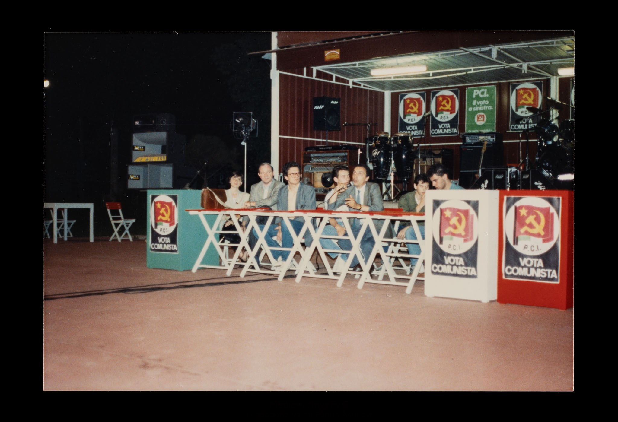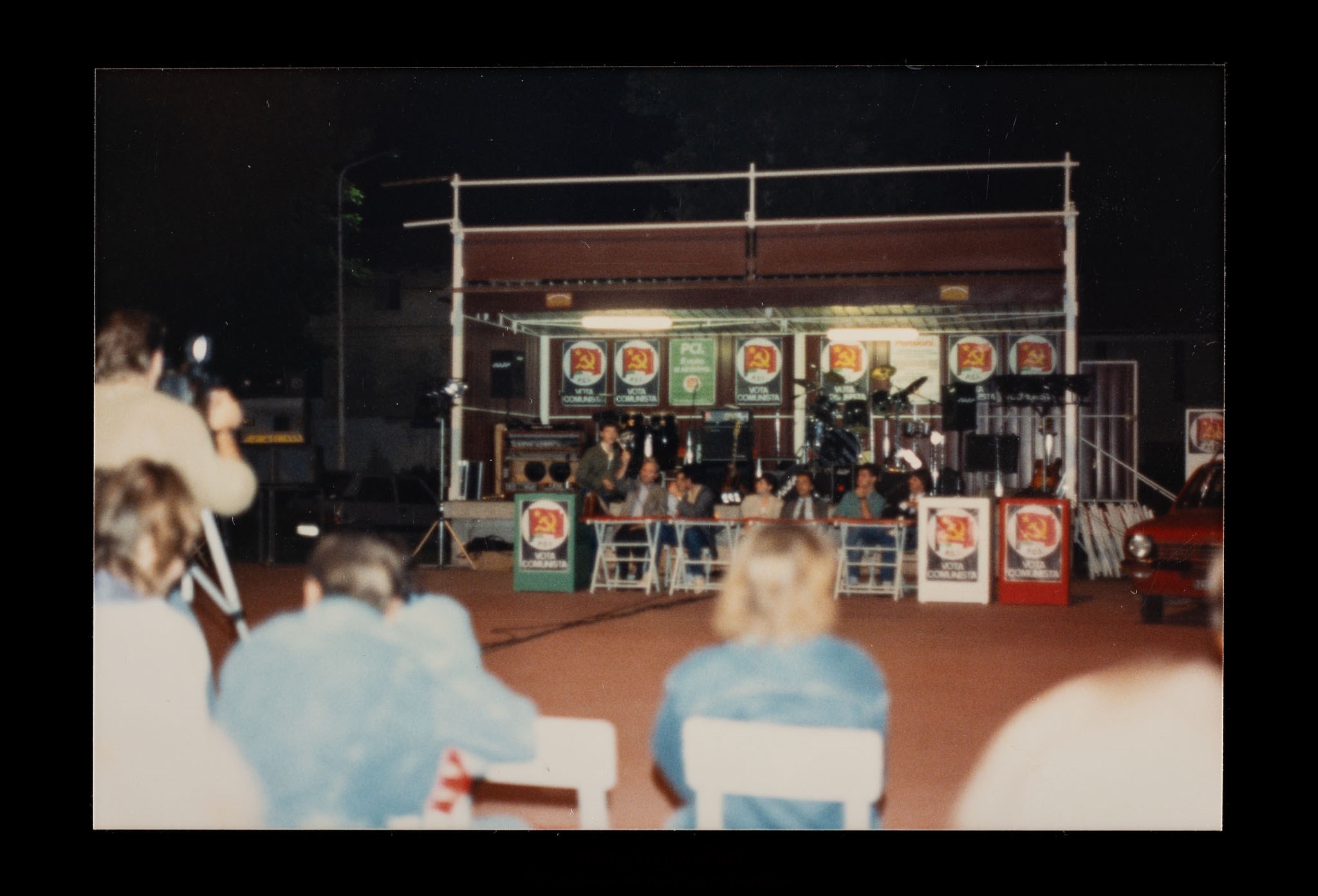 Festa o festival dell’Unità ad Aquileia. Comizio.Gruppo di dirigenti del PCI presso il palco. Interviene Roberto Viezzi