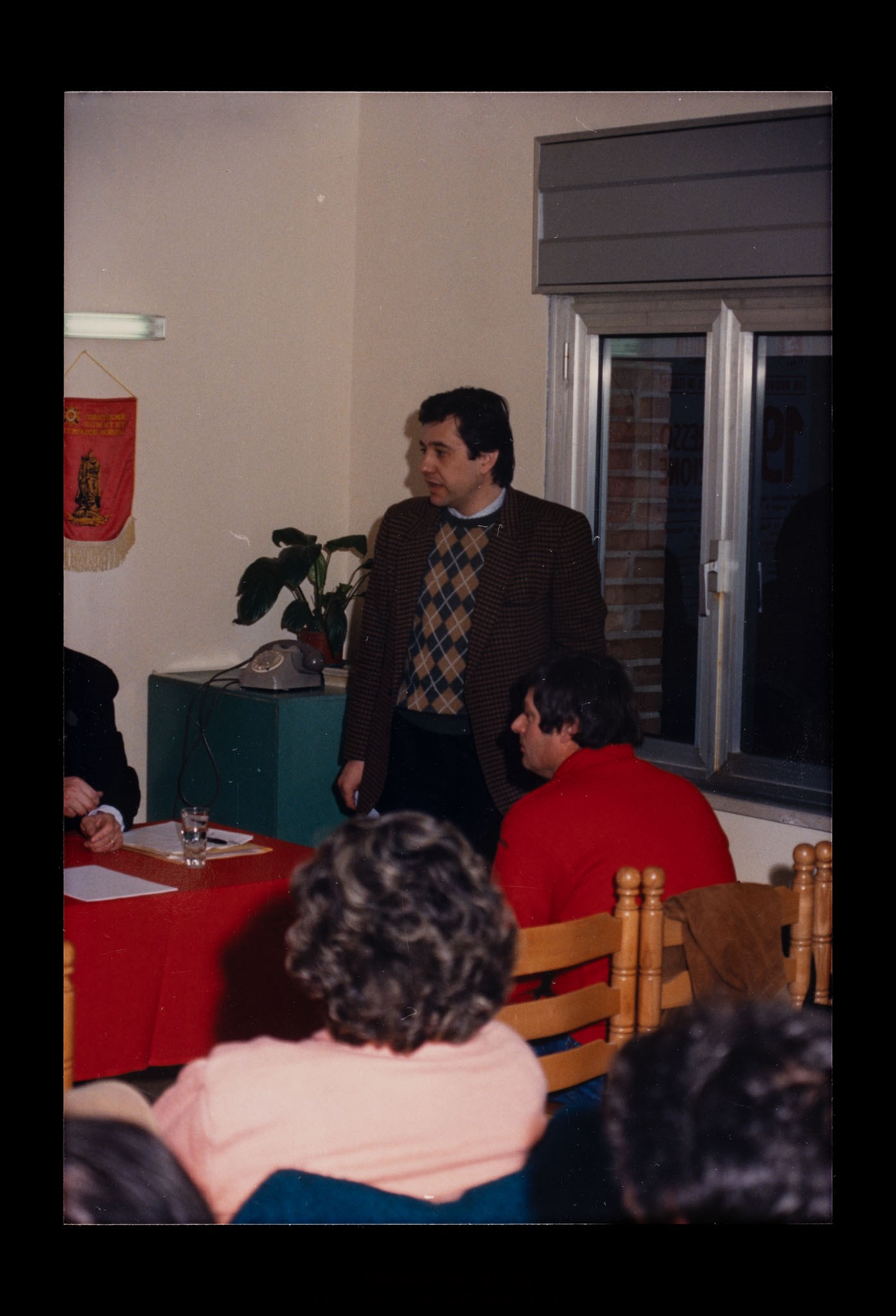 Assemblea per il 20° Congresso della sezione del PCI di Aquileia. Il tavolo della presidenza e il pubblico