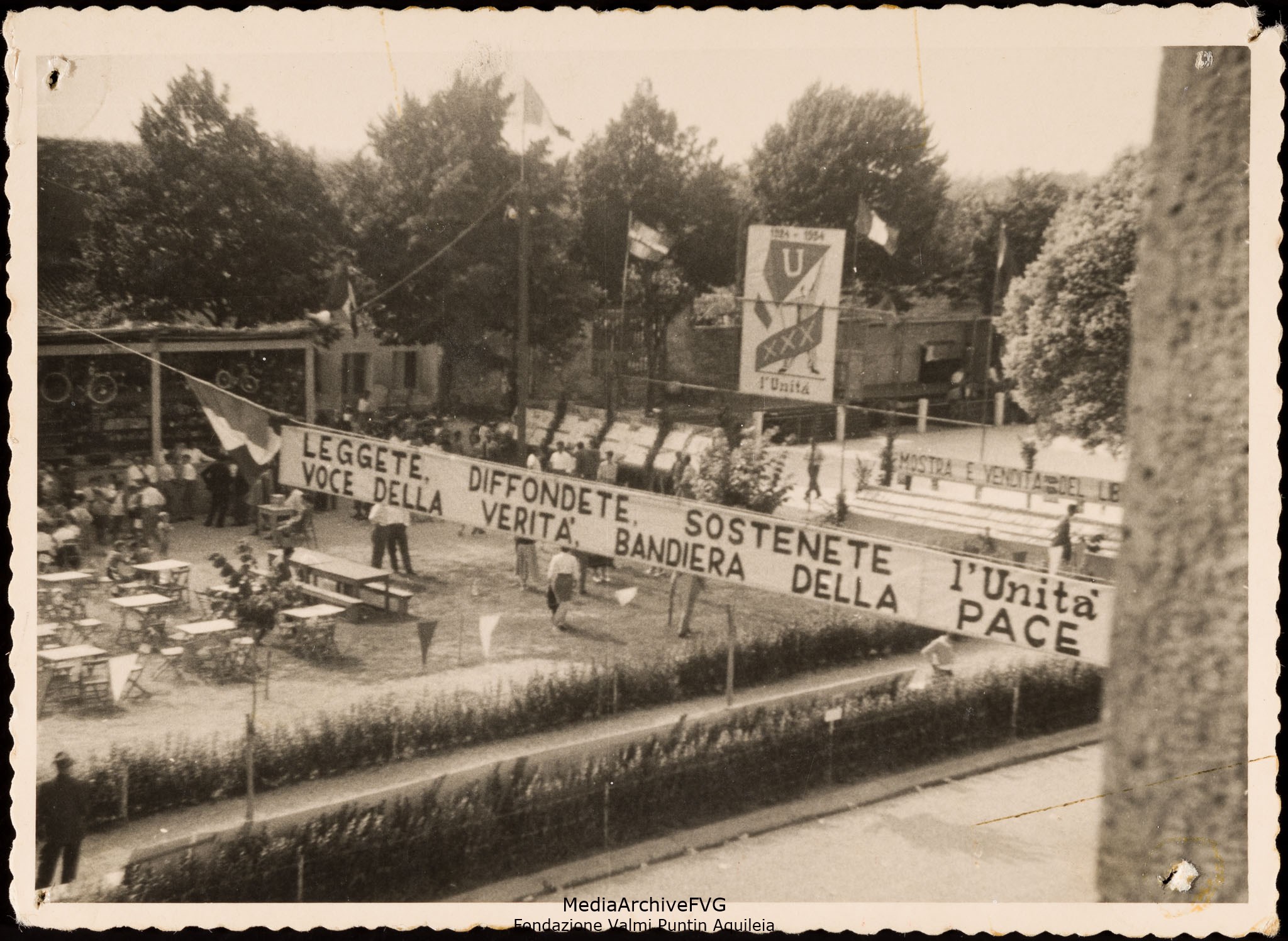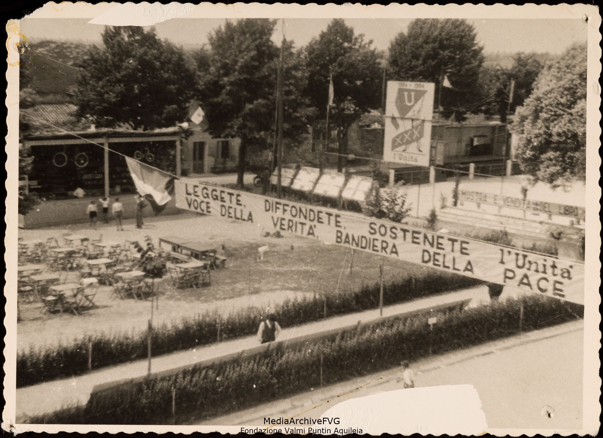Festa o festival dell’Unità ad Aquileia. Particolare dell'allestimento