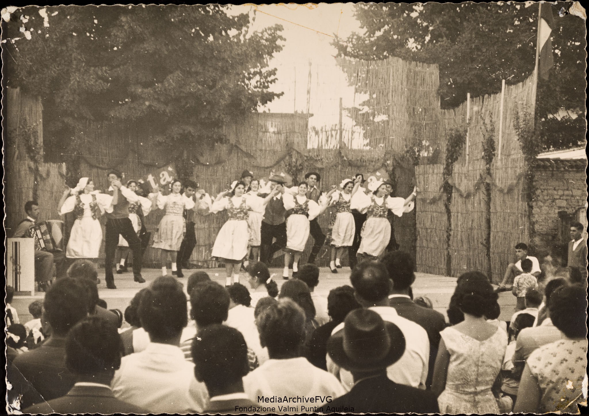 Festa o festival dell’Unità ad Aquileia. Primo Festival provinciale. Gruppo folcloristico si esibisce sul palco