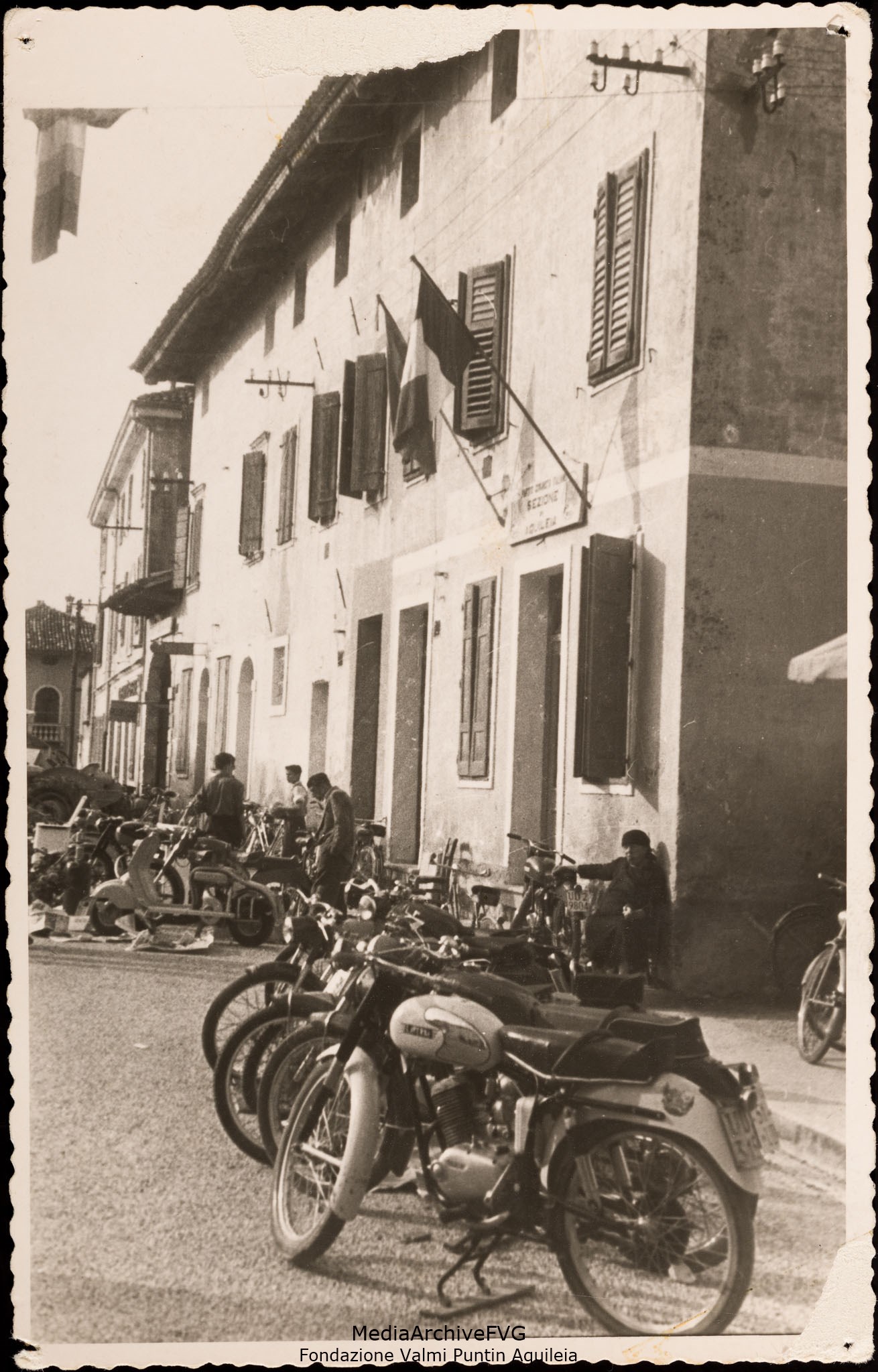 Festa o festival dell’Unità ad Aquileia. Mostra di motocicli davanti alla sezione del PCI
