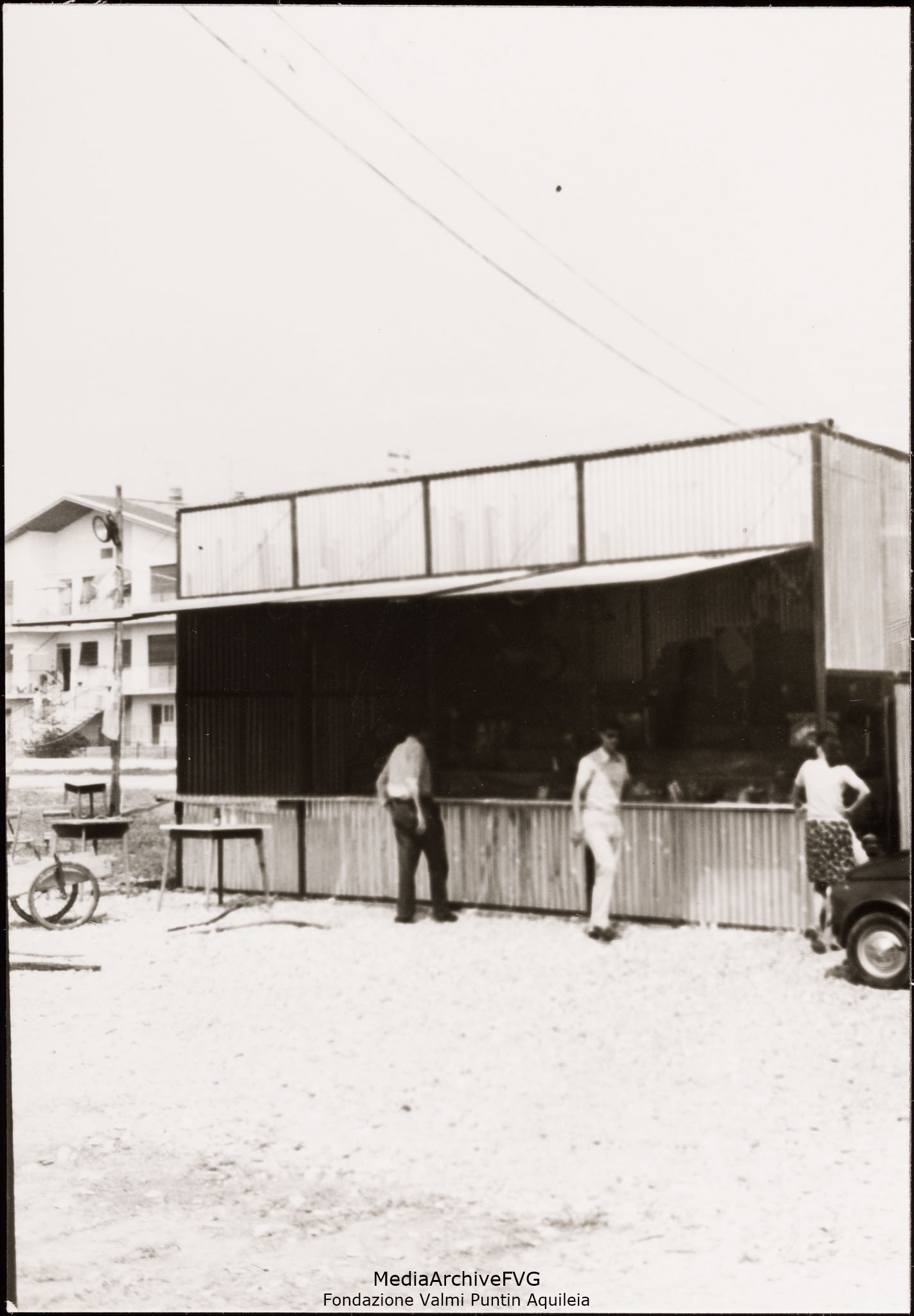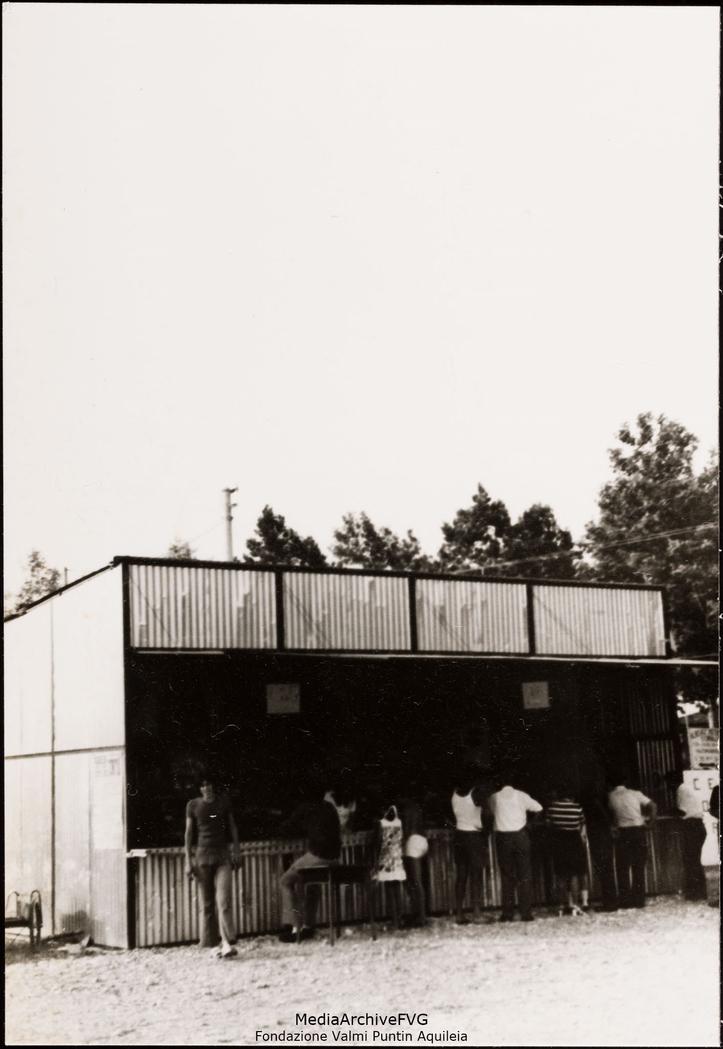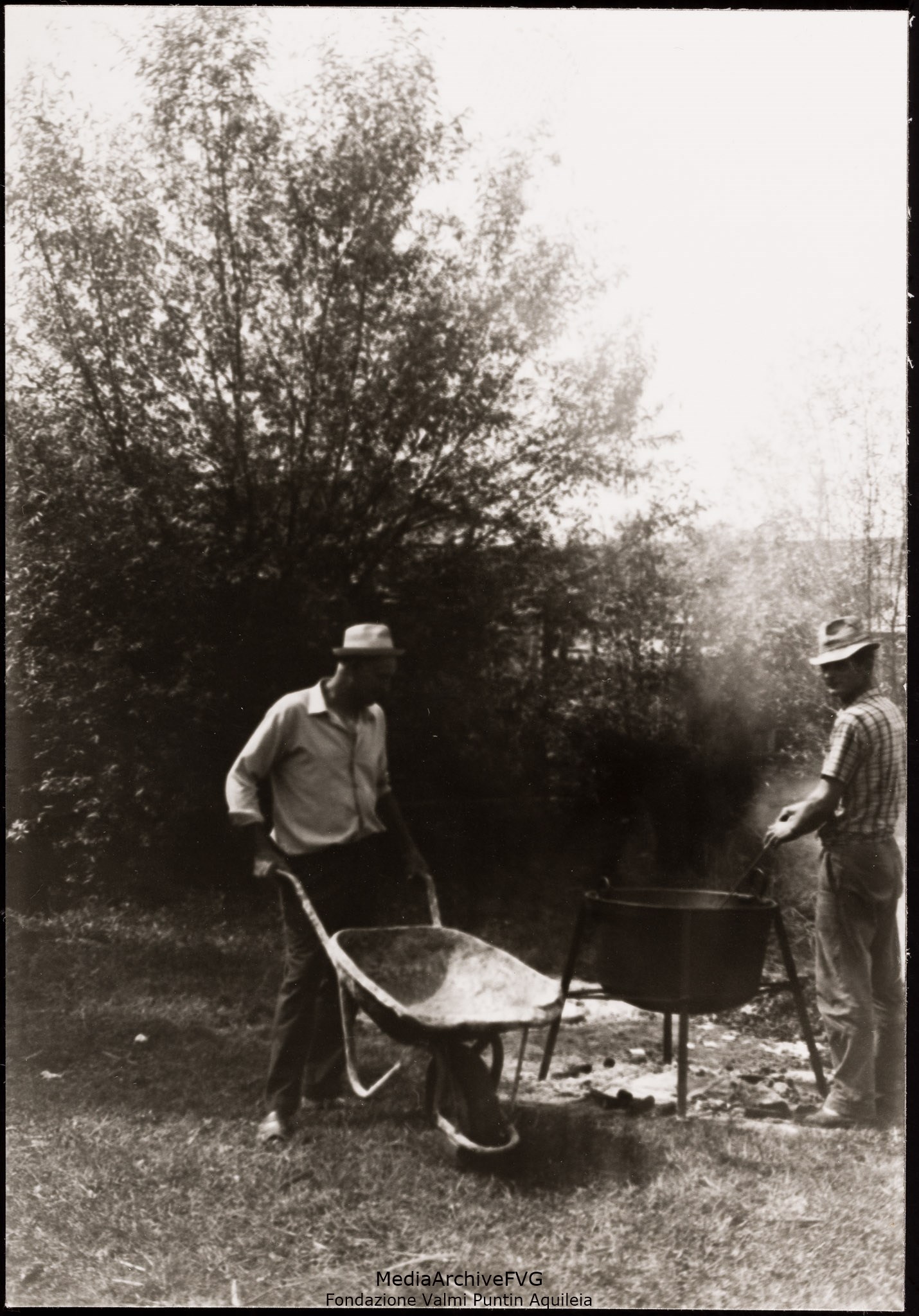 Festa o festival dell’Unità ad Aquileia. Volontari addetti alle griglie. Alfredo Virgolin porta una cassetta di salsicce