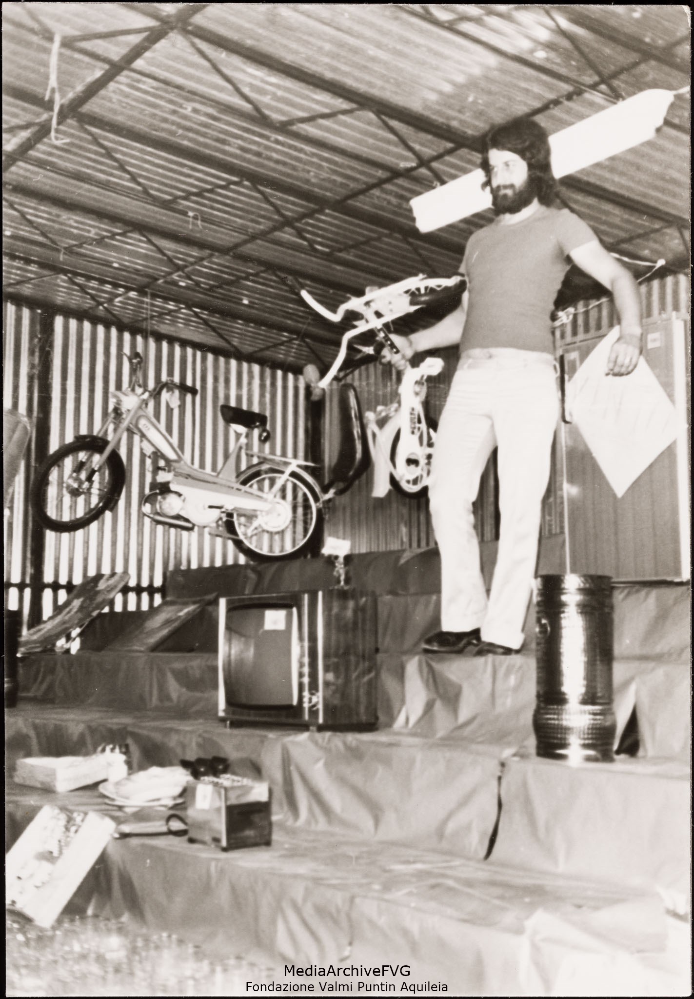 Festa o festival dell’Unità ad Aquileia. Roberto Tomat consegna la bicicletta vinta al chiosco della pesca di beneficenza