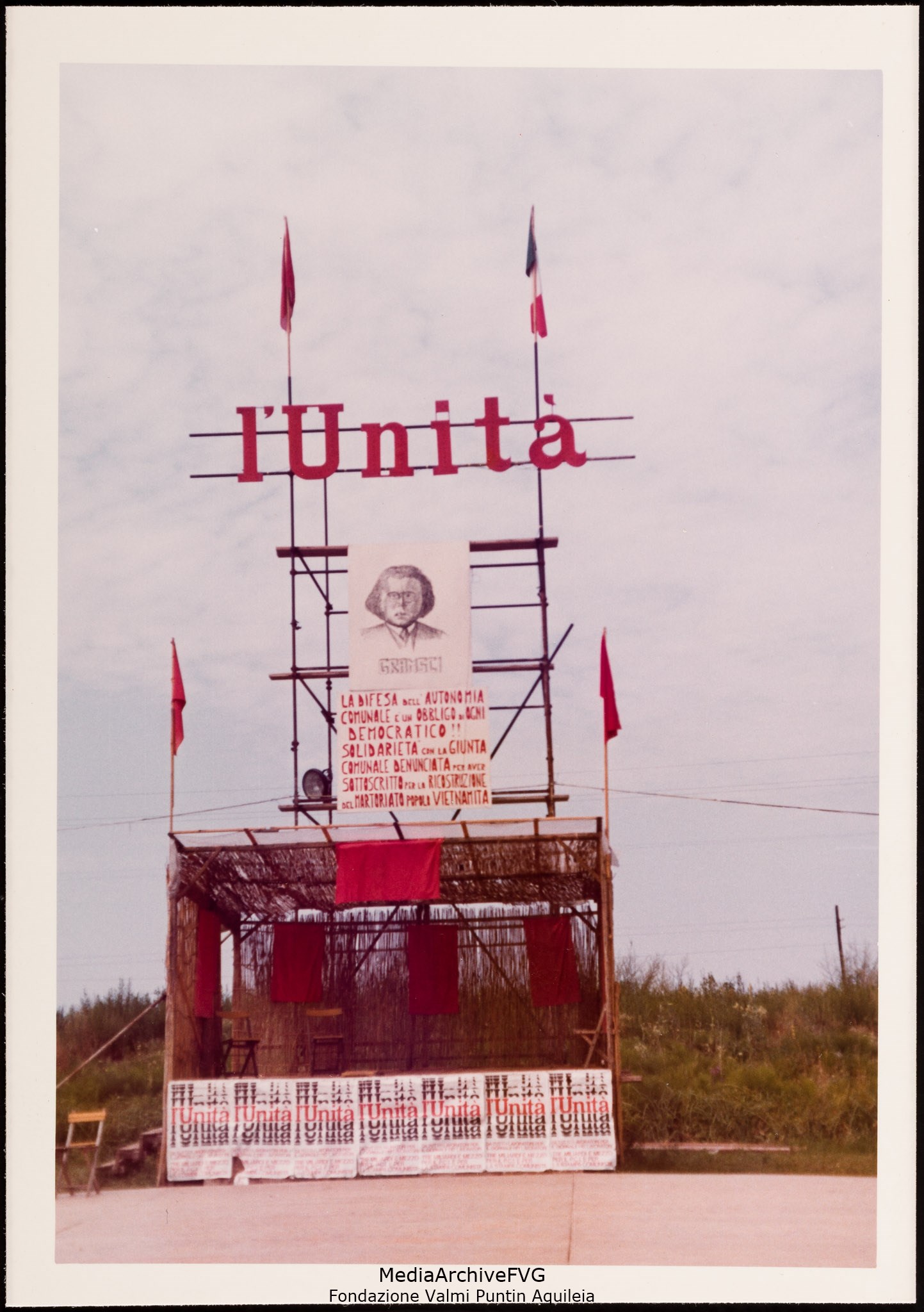 Festa o festival dell’Unità ad Aquileia. Il piazzale allestito per la manifestazione