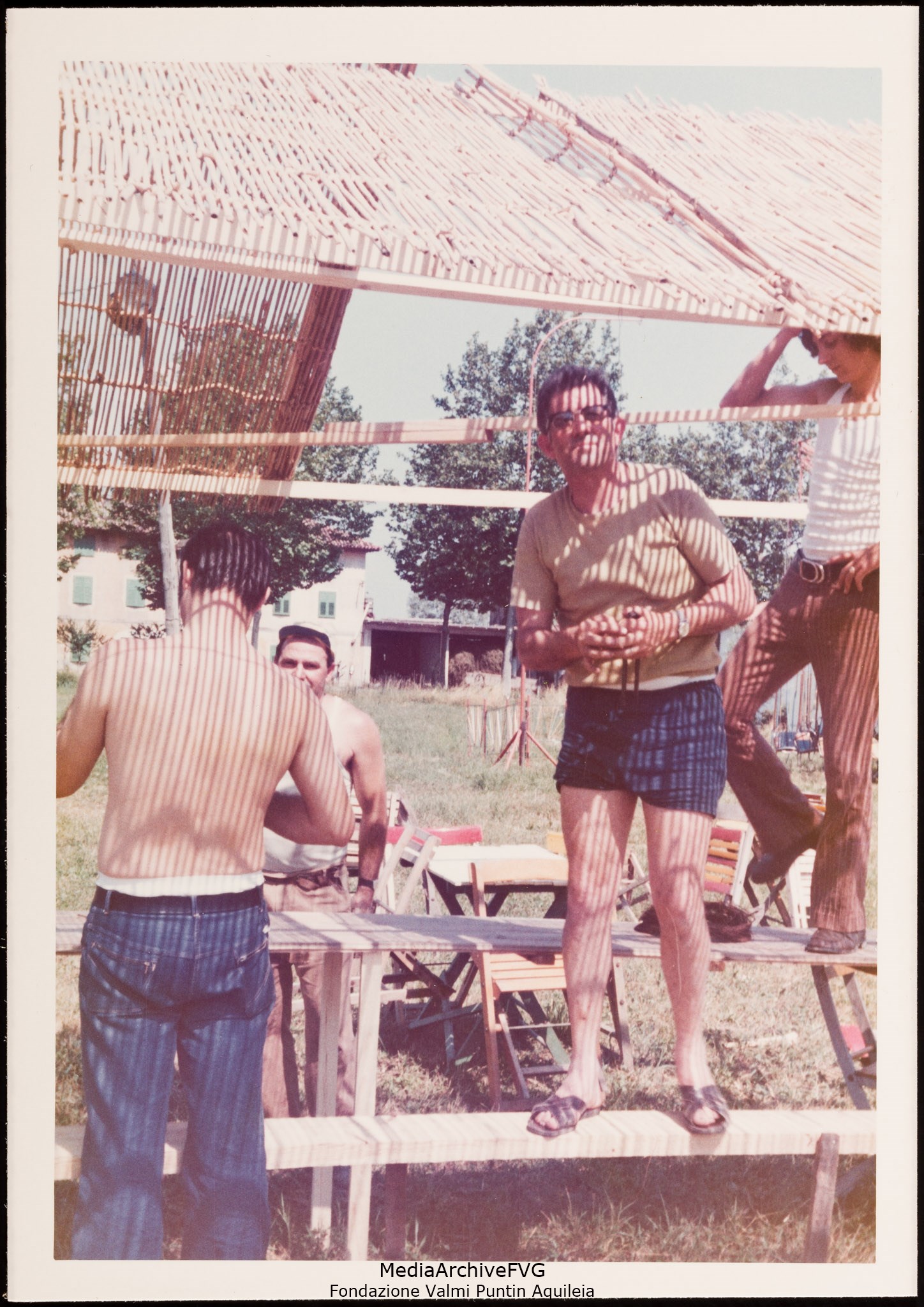 Festa o festival dell’Unità ad Aquileia. Volontari costruiscono i chioschi
