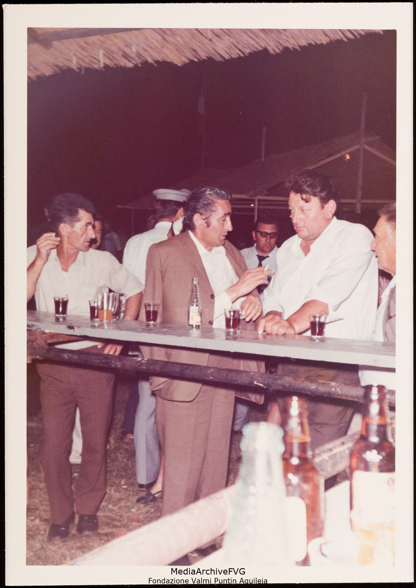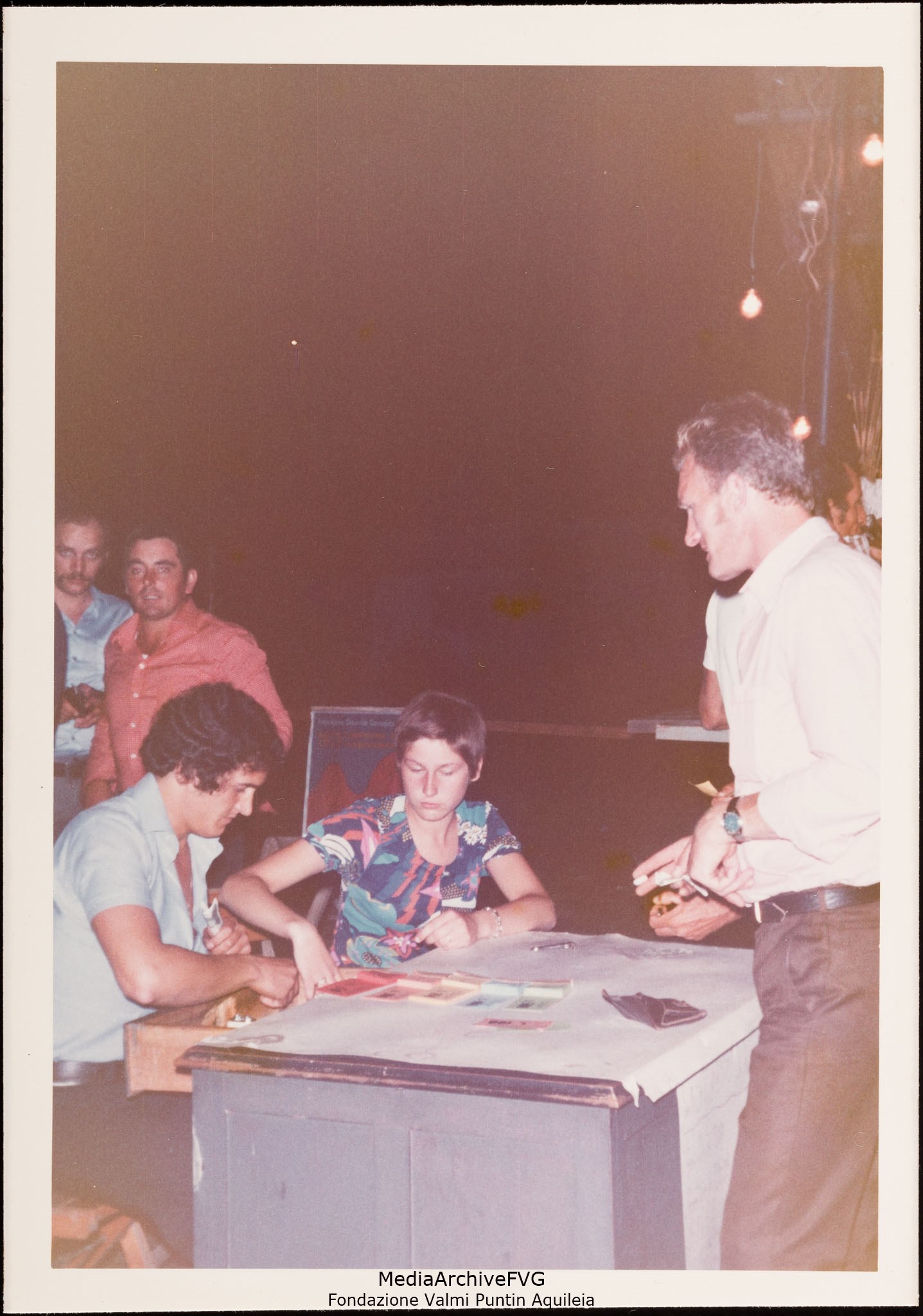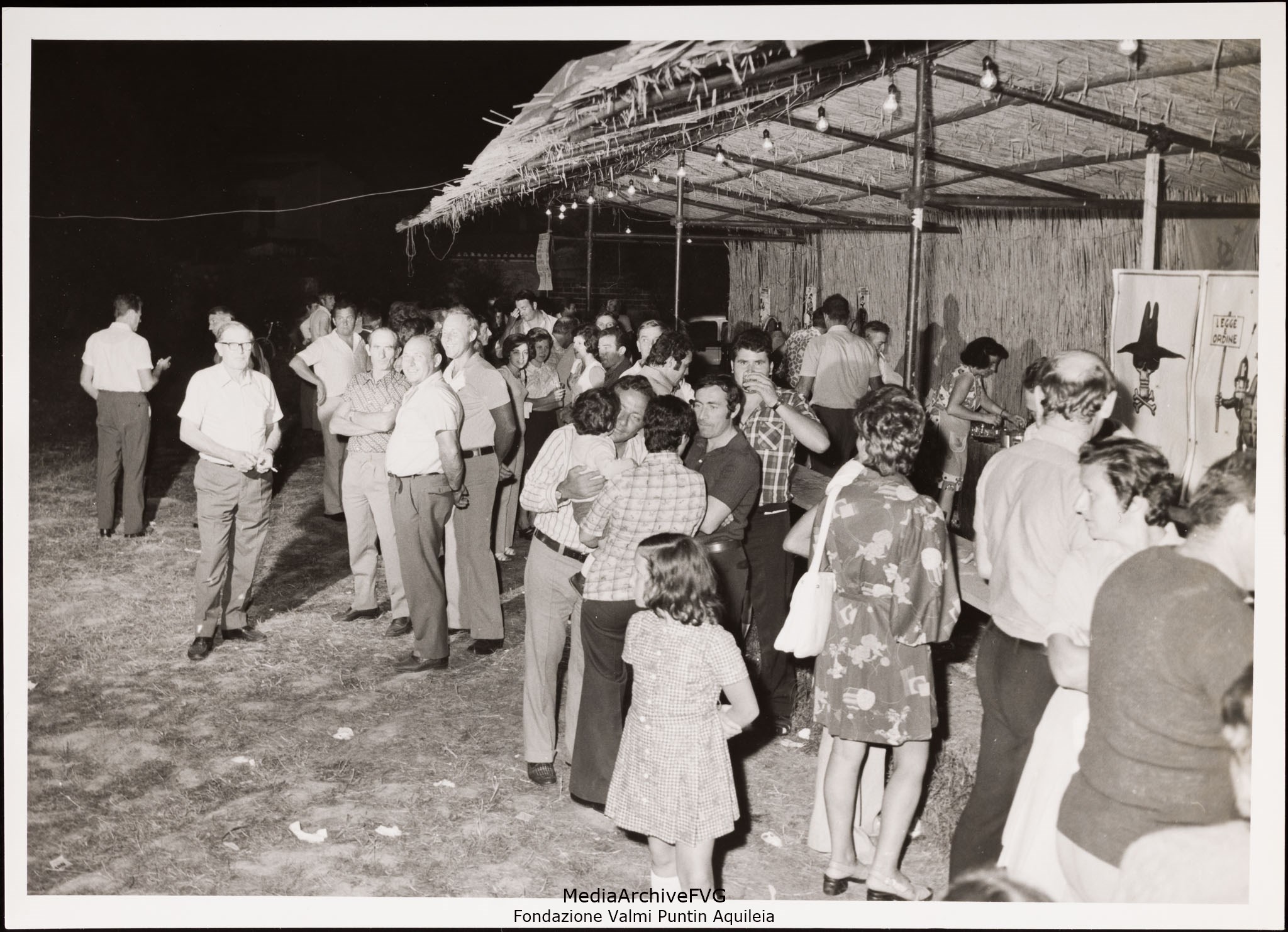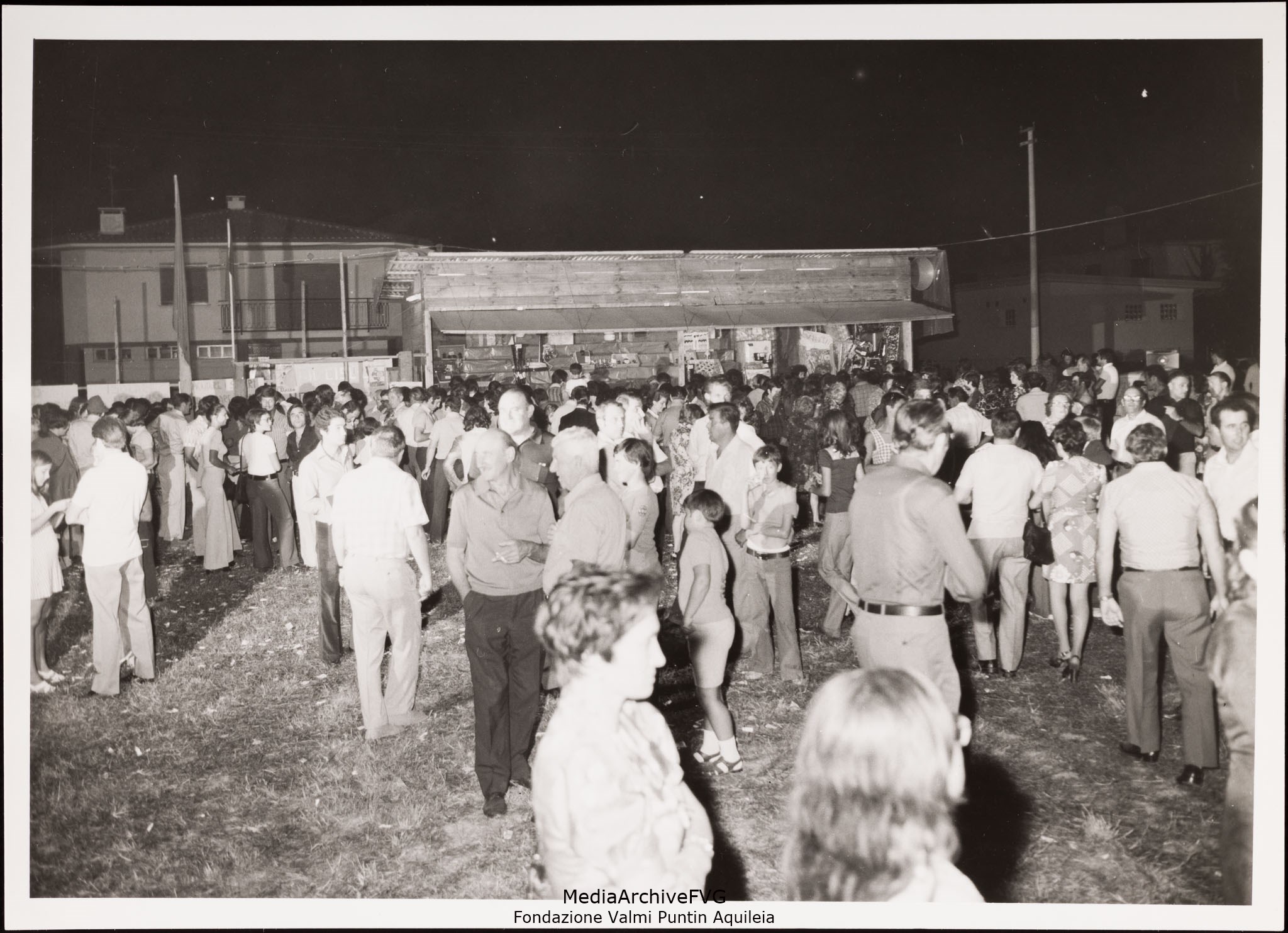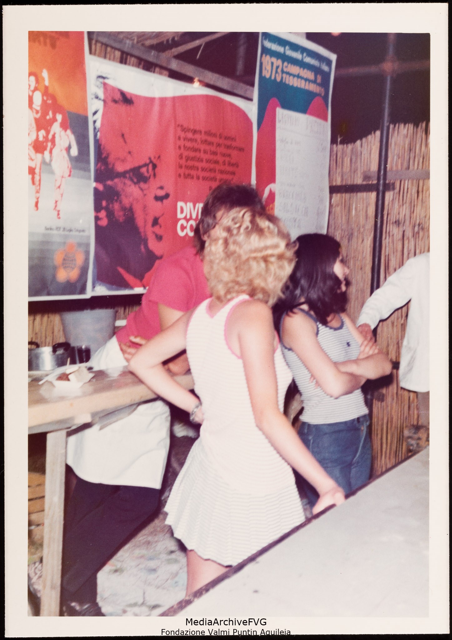 Festa o festival dell’Unità ad Aquileia. Partecipanti presso un chiosco