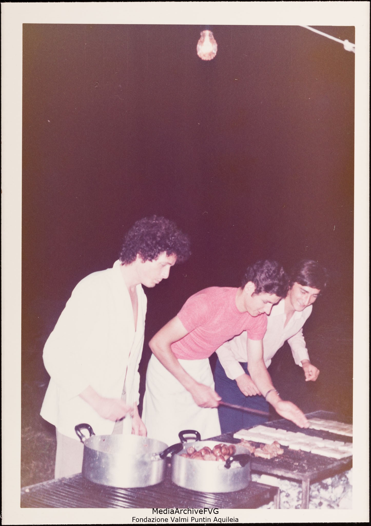 Festa o festival dell’Unità ad Aquileia. Tre volontari in un momento di pausa