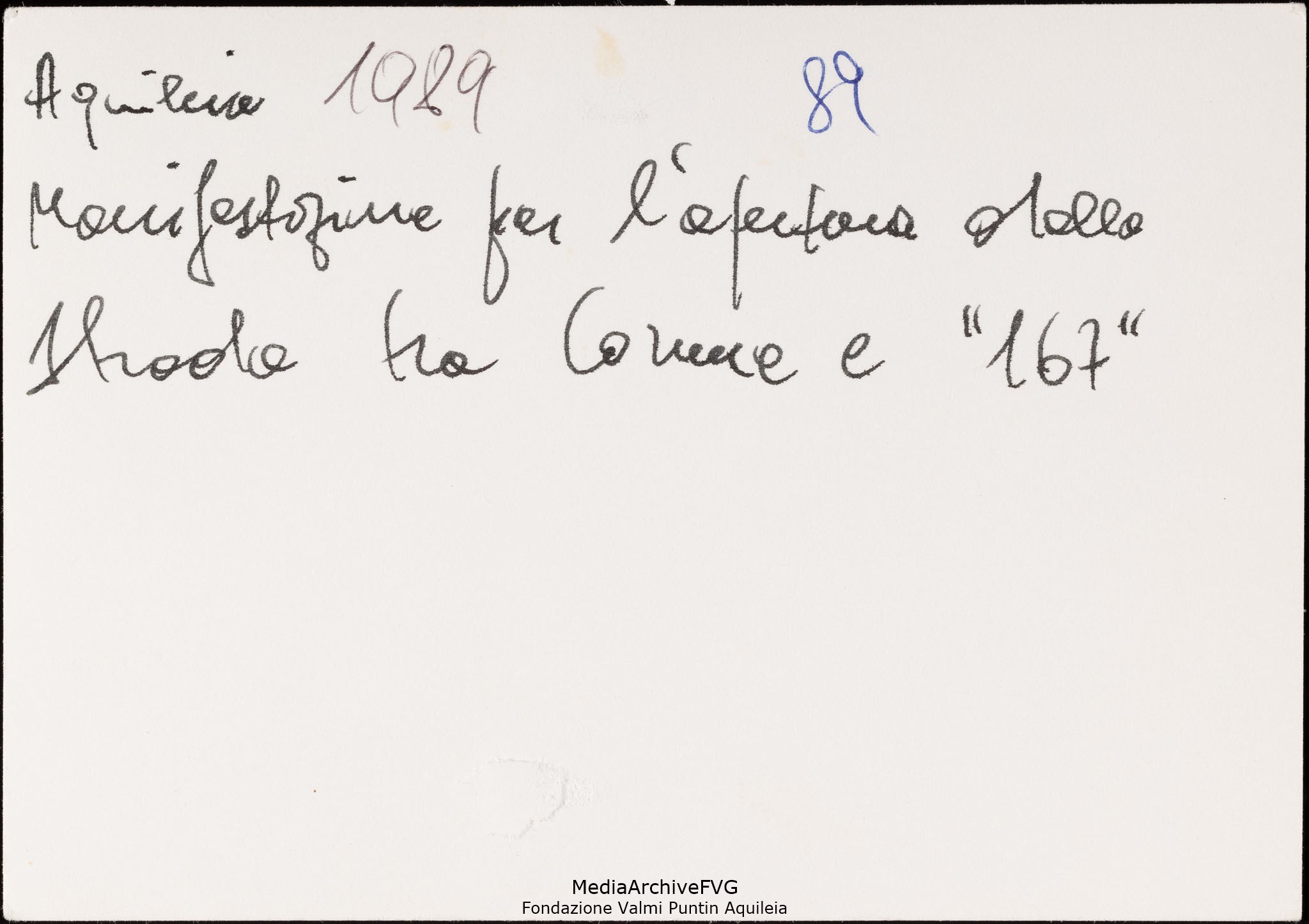 Manifestazione per l’apertura della strada di collegamento tra il centro storico e la nuova zona del Piano Edilizia Economico Popolare (PEEP). Raduno davanti al Municipio