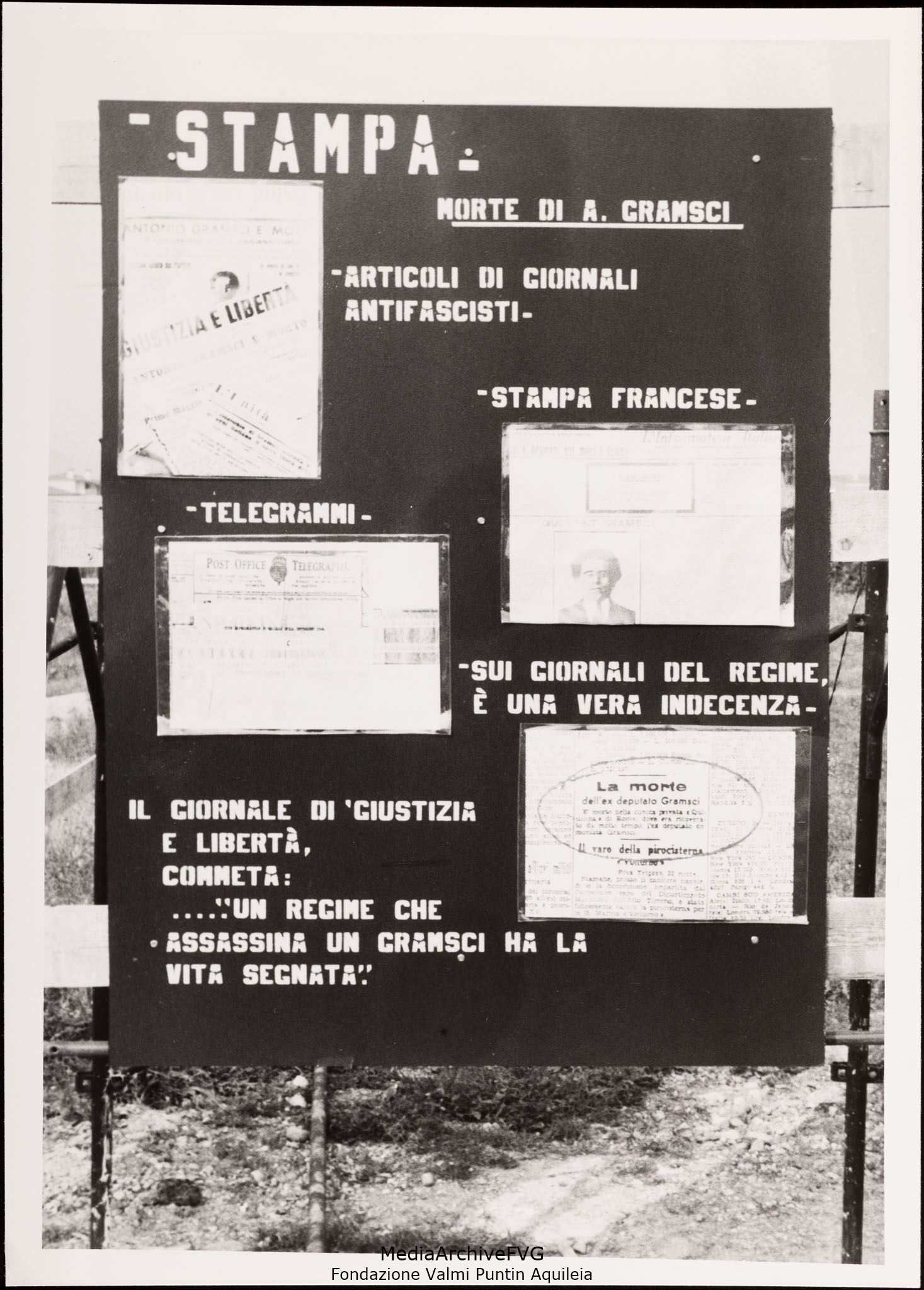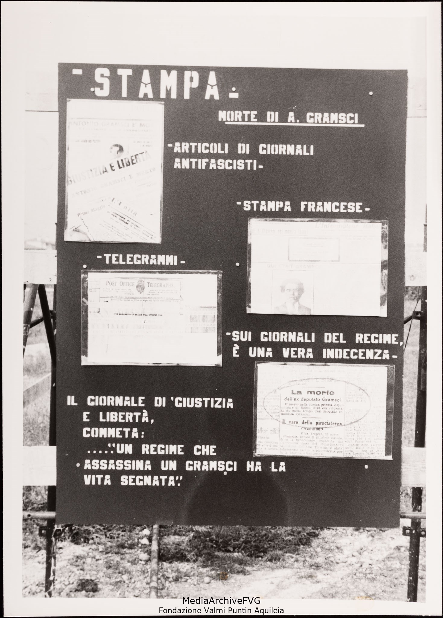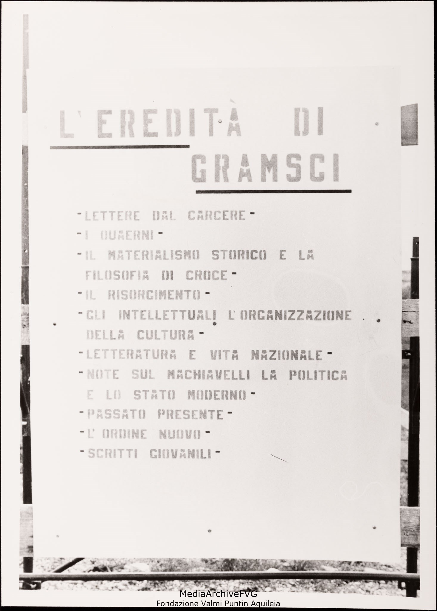 Festa o festival dell’Unità ad Aquileia. Una mostra dedicata ad Antonio Gramsci in occasione del 40° anniversario della sua morte realizzata dalle ragazze e dai ragazzi della FGCI, con l’aiuto di Tullio Tentor. Pannello 9