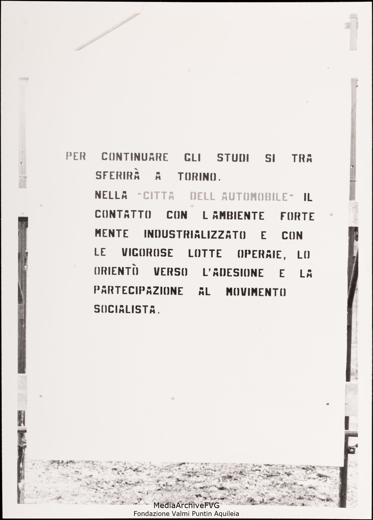 Festa o festival dell’Unità ad Aquileia. Una mostra dedicata ad Antonio Gramsci in occasione del 40° anniversario della sua morte realizzata dalle ragazze e dai ragazzi della FGCI, con l’aiuto di Tullio Tentor. Pannello 4