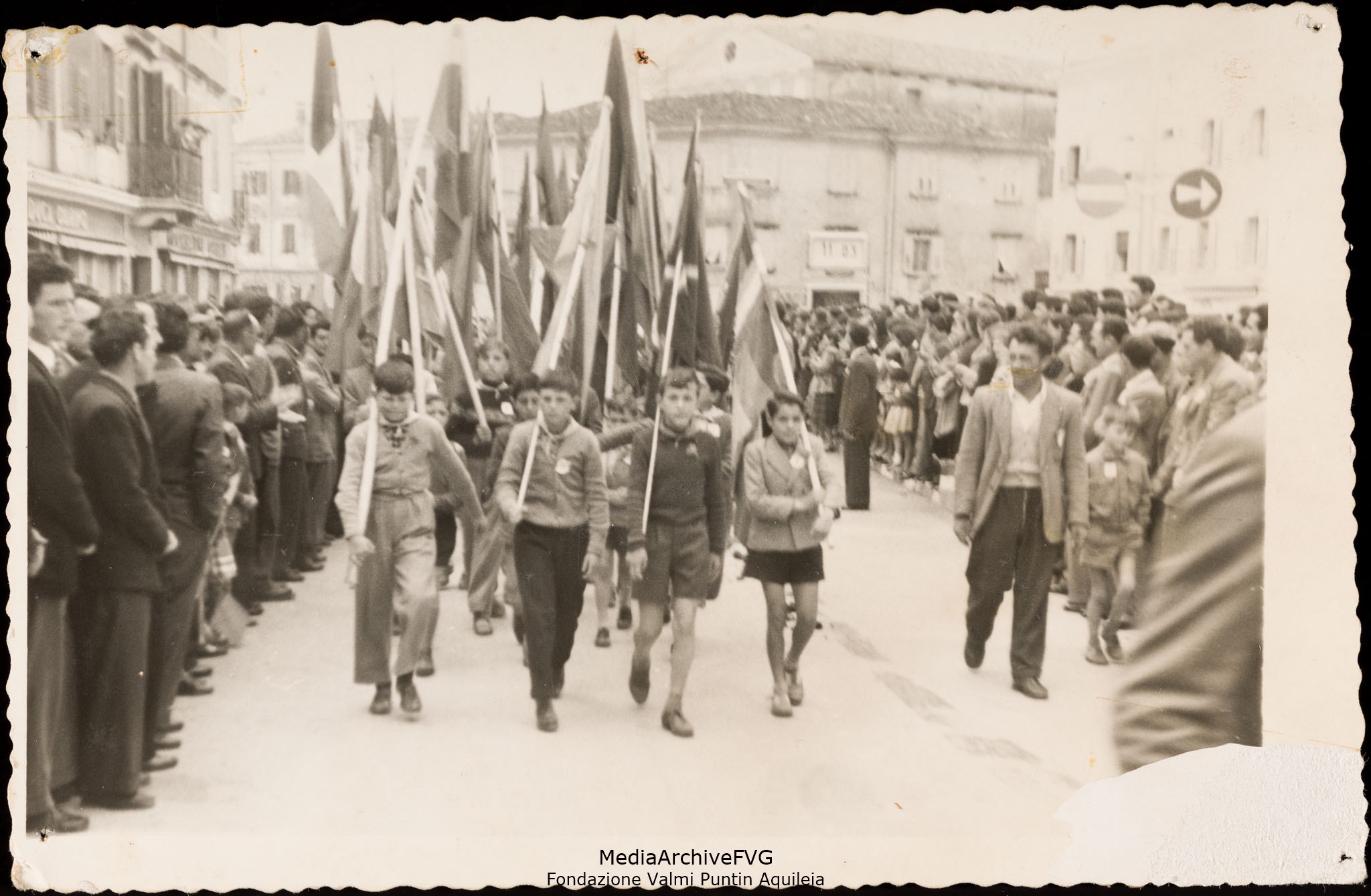 Festa del 1° maggio di Cervignano del Friuli. Corteo per raggiungere piazza Indipendenza. Sfilata dei pionieri