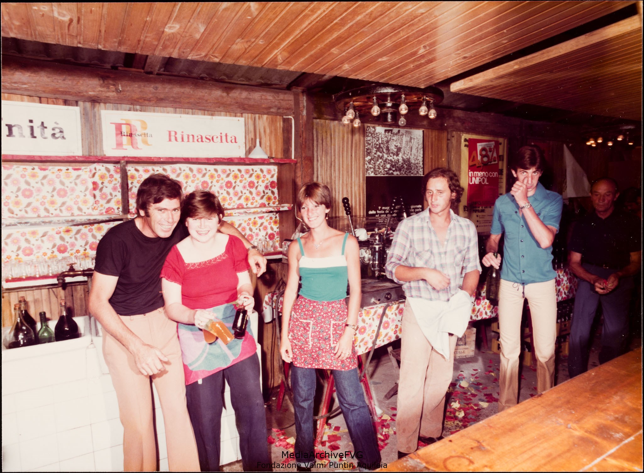 Festa o festival dell’Unità ad Aquileia. Alcuni volontari posano in una foto di gruppo