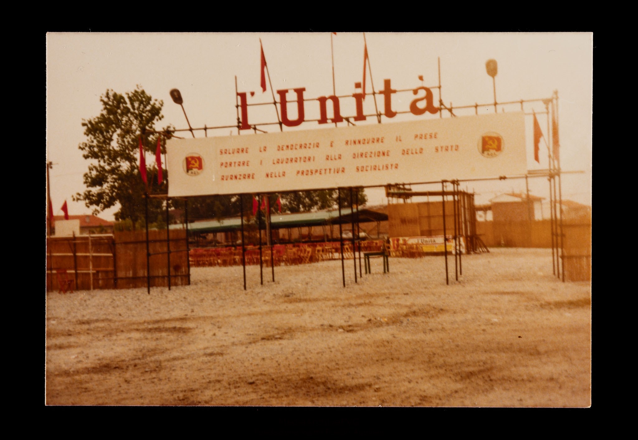 Festa o festival dell’Unità ad Aquileia. Cartellone di ingresso alla festa