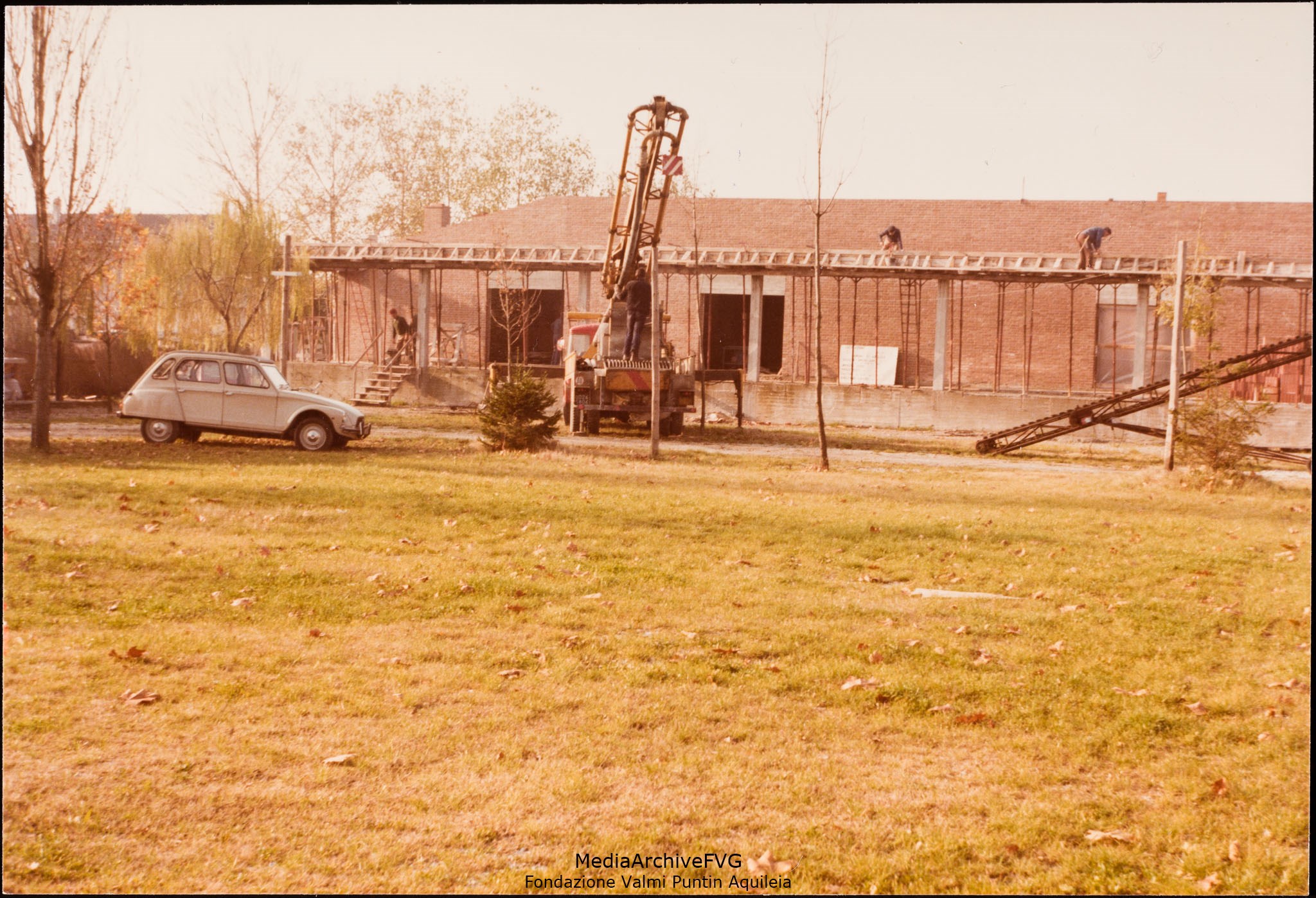 Edificazione della Casa del Popolo di Aquileia. Veduta durante i lavori per la realizzazione del porticato esterno (lato est)