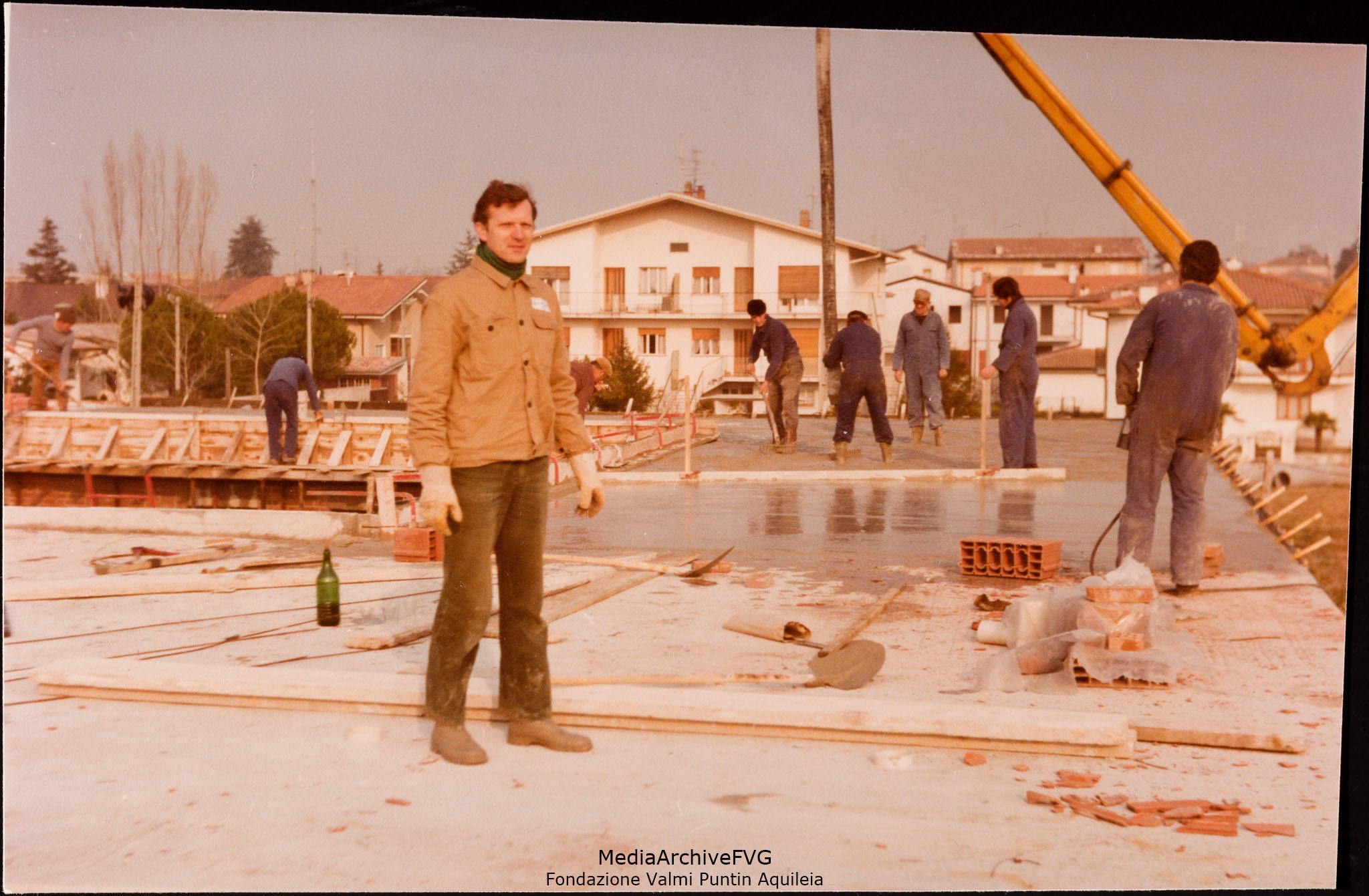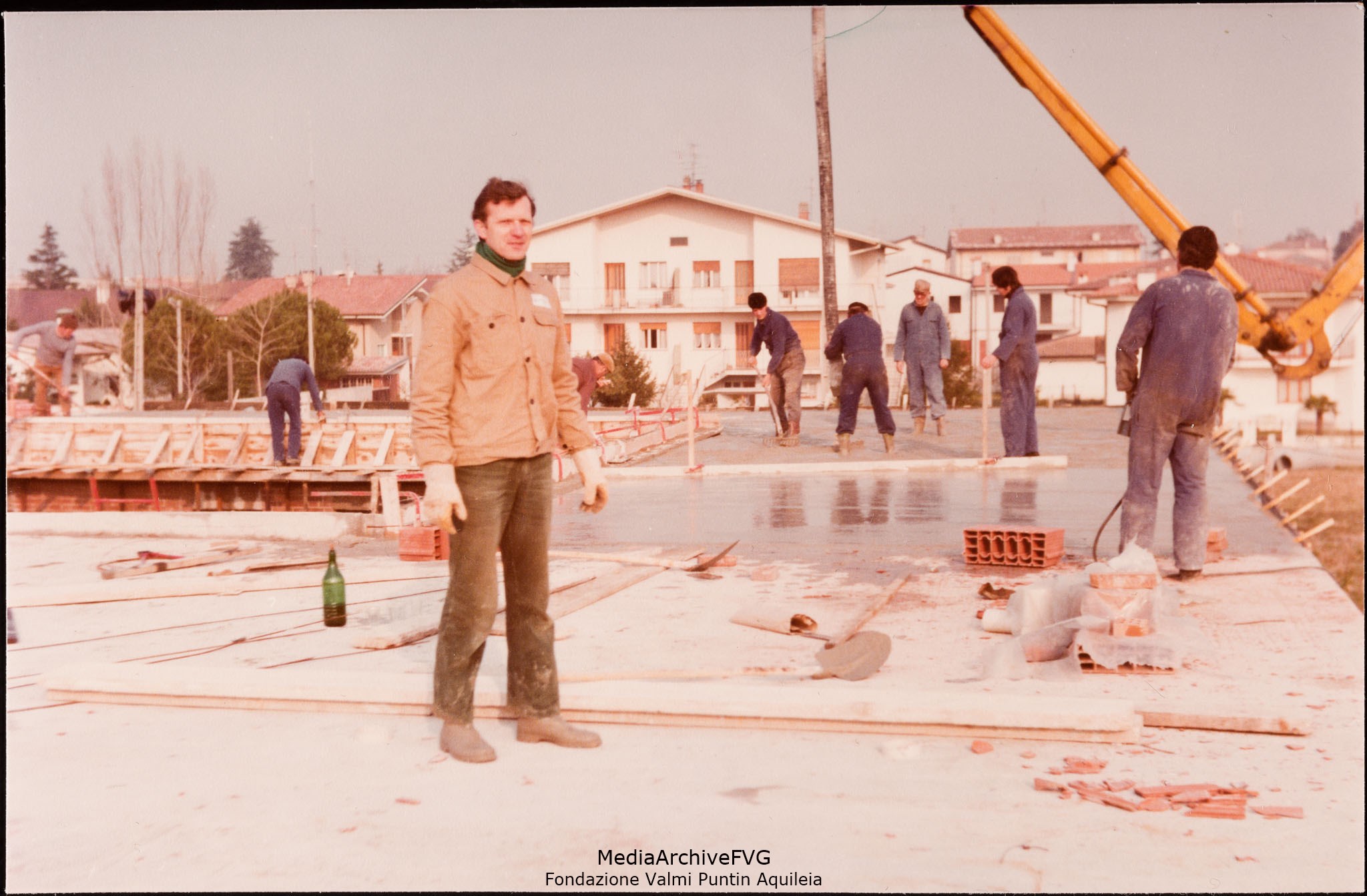 Edificazione della Casa del Popolo di Aquileia. Militanti al lavoro durante il getto del solaio del patio interno