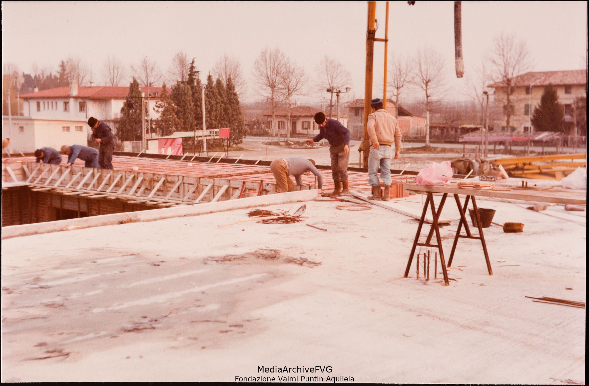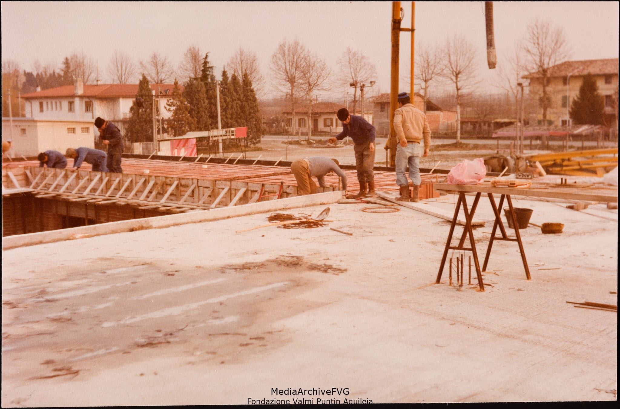 Edificazione della Casa del Popolo di Aquileia. Lavori di preparazione per il getto di cemento sul solaio