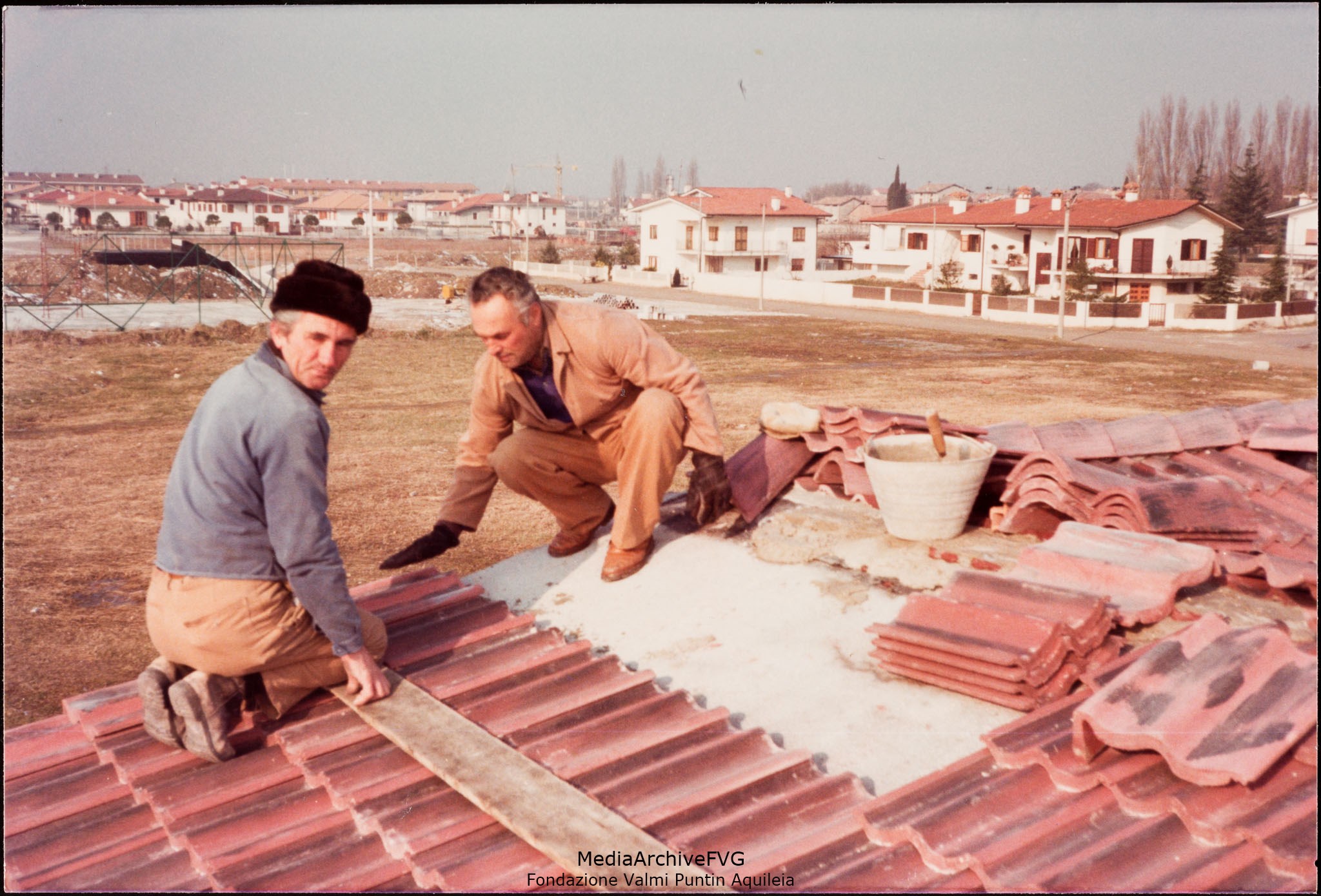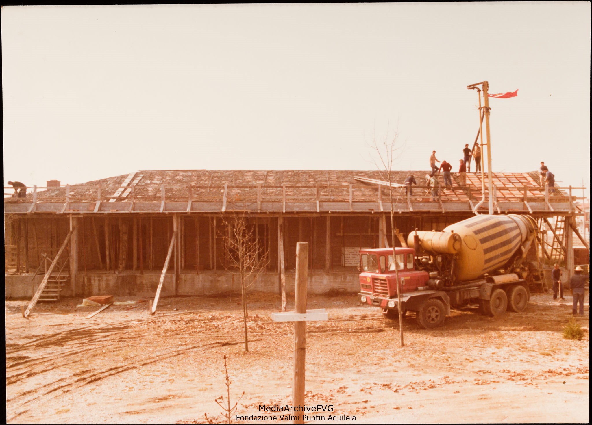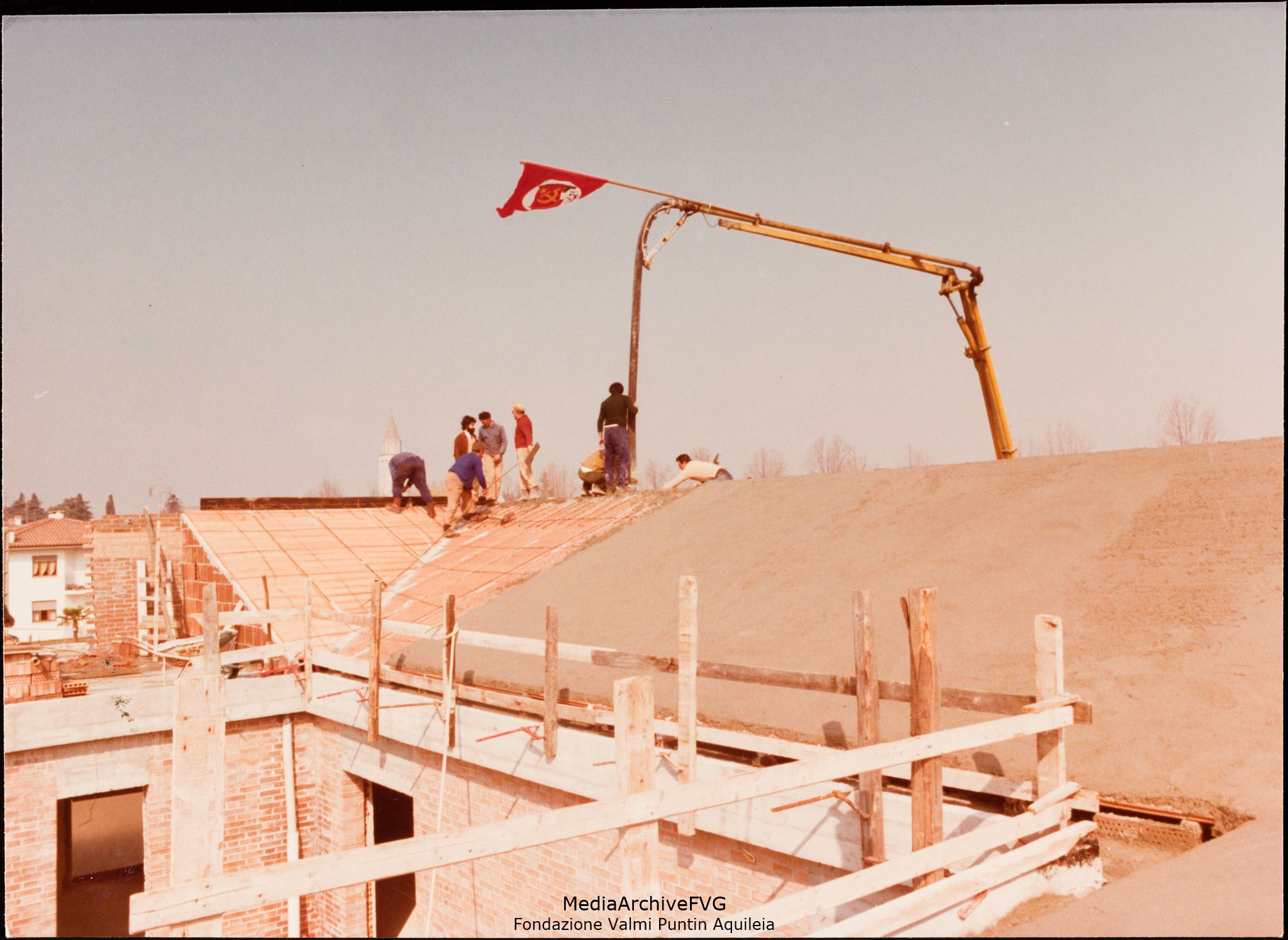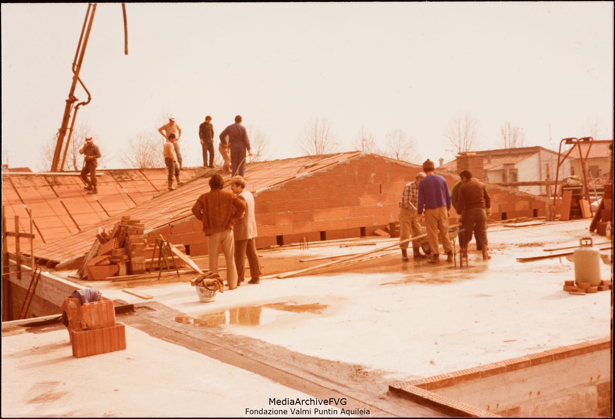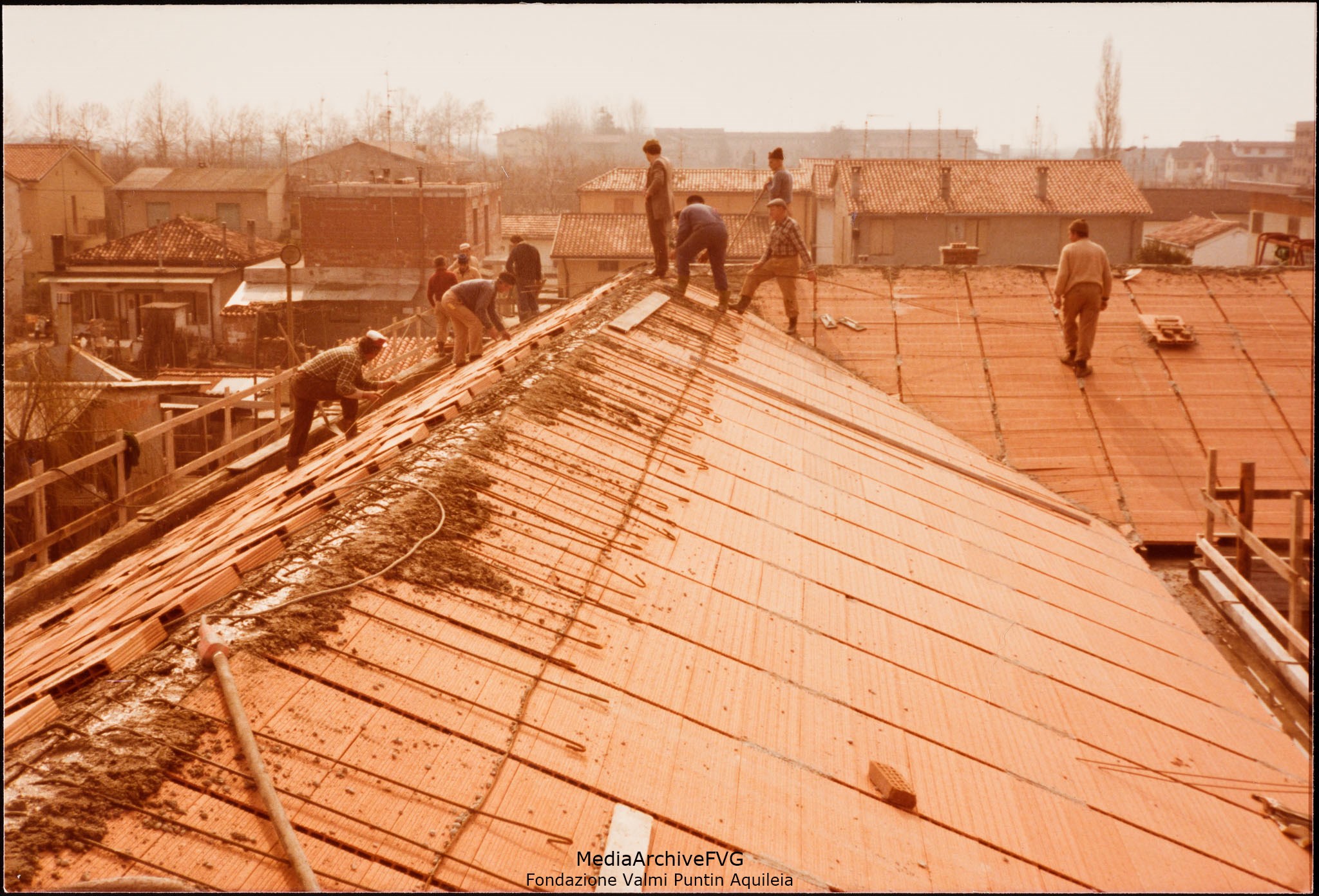 Edificazione della Casa del Popolo di Aquileia. Cementificazione delle falde del tetto