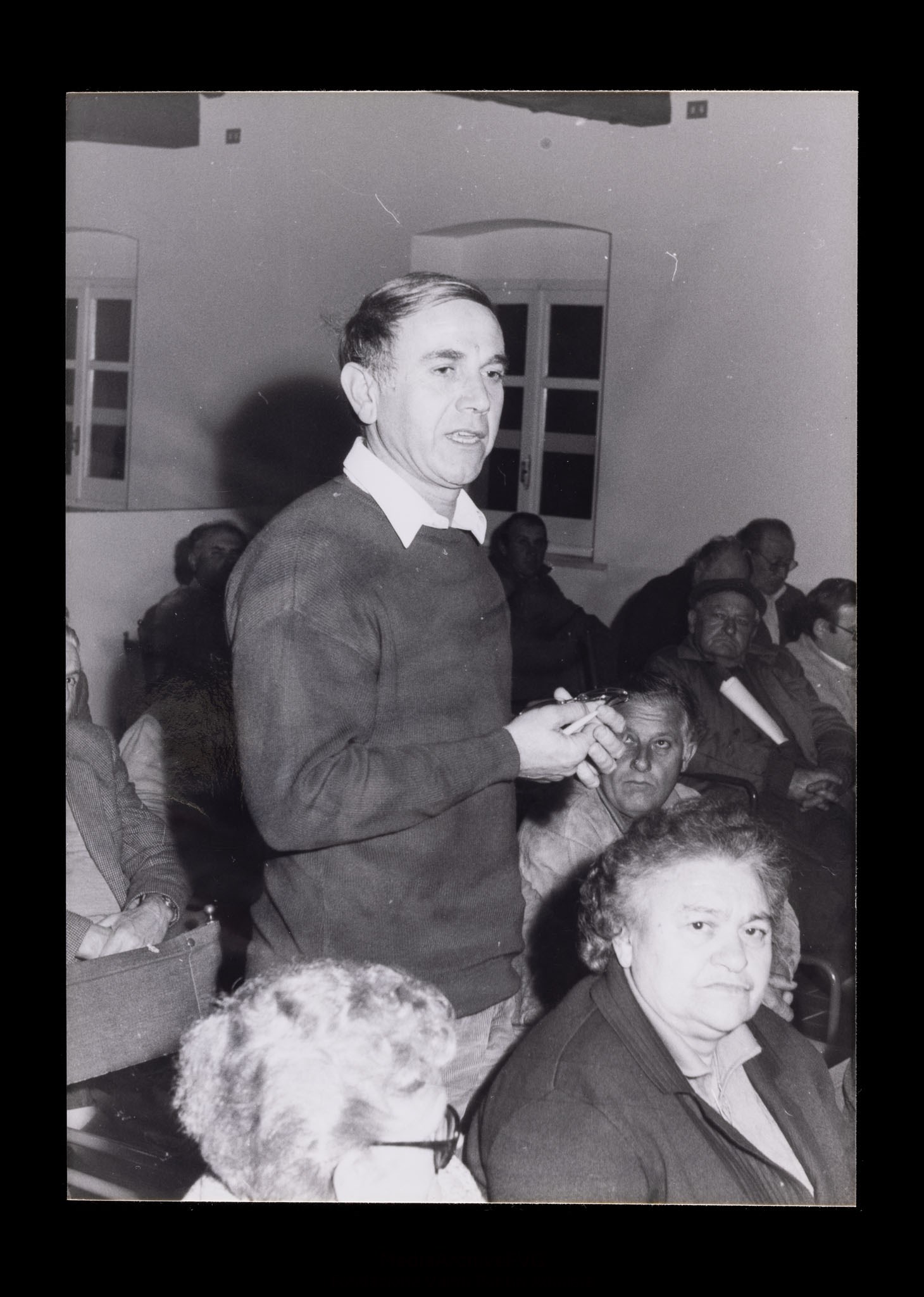 Incontro-dibattito sul tema "Interventi straordinari a favore del Comune di Aquileia" (proposta di legge), promosso dalla sezione del PCI di Aquileia. Intervento di Egidio Cignolin, segretario della sezione