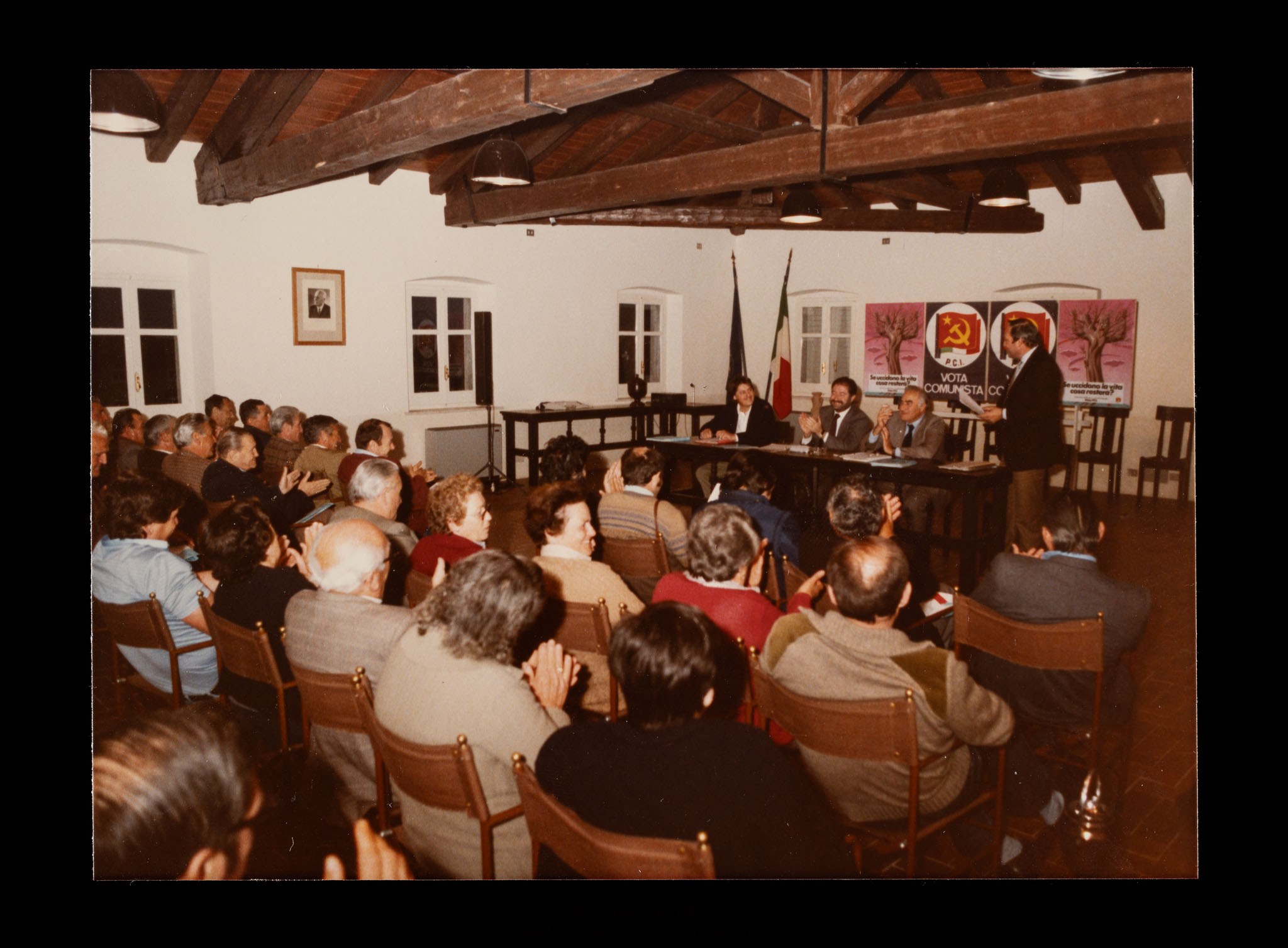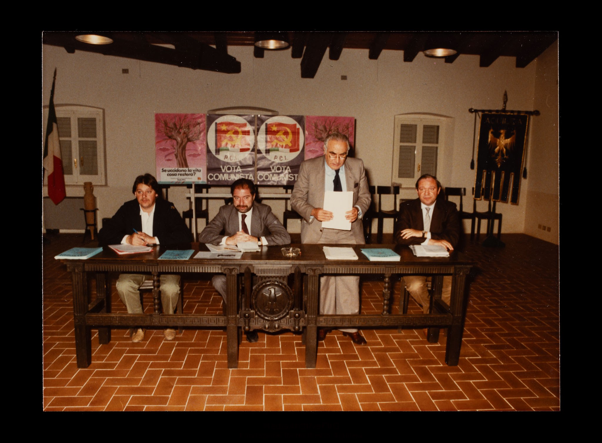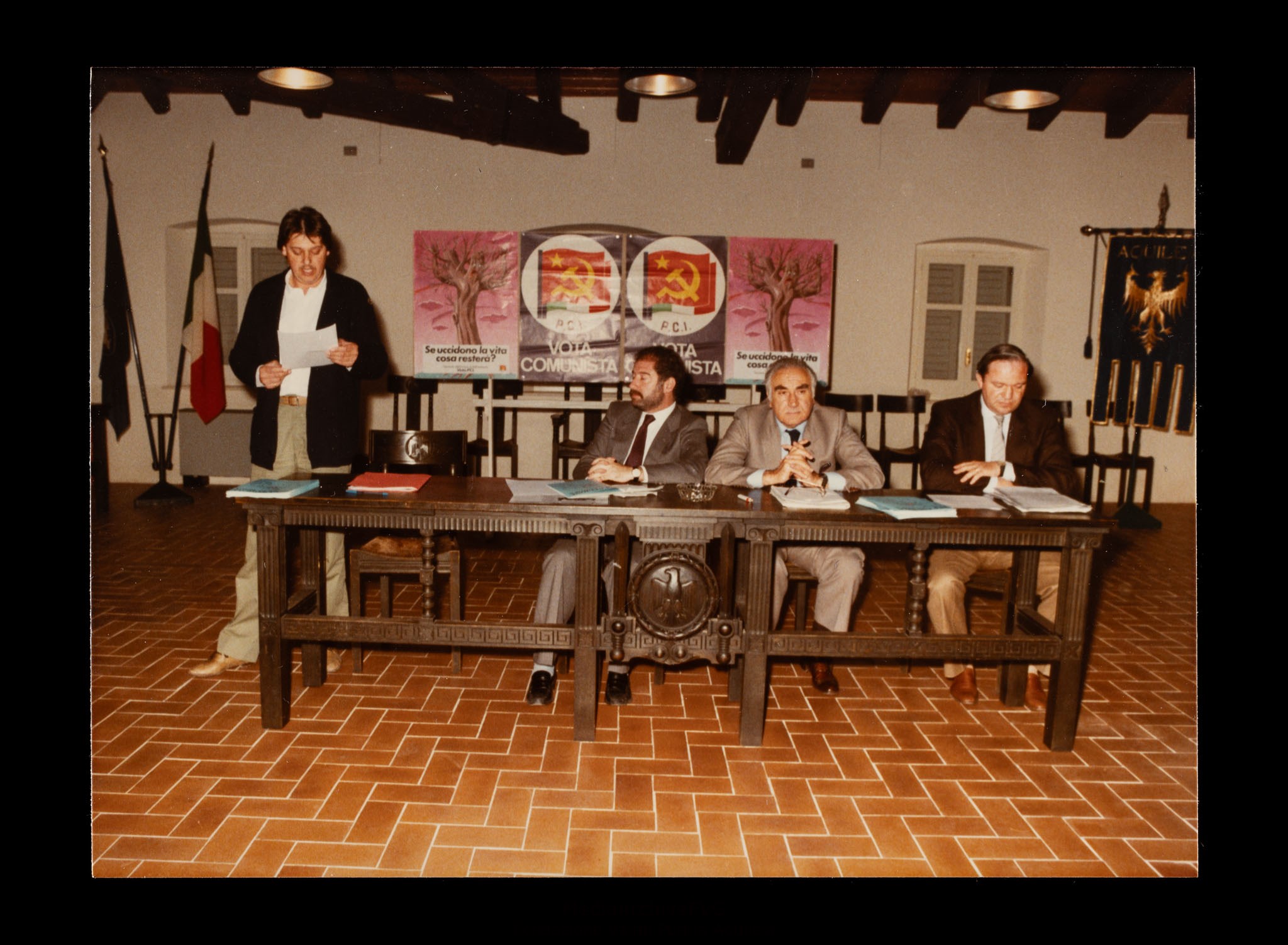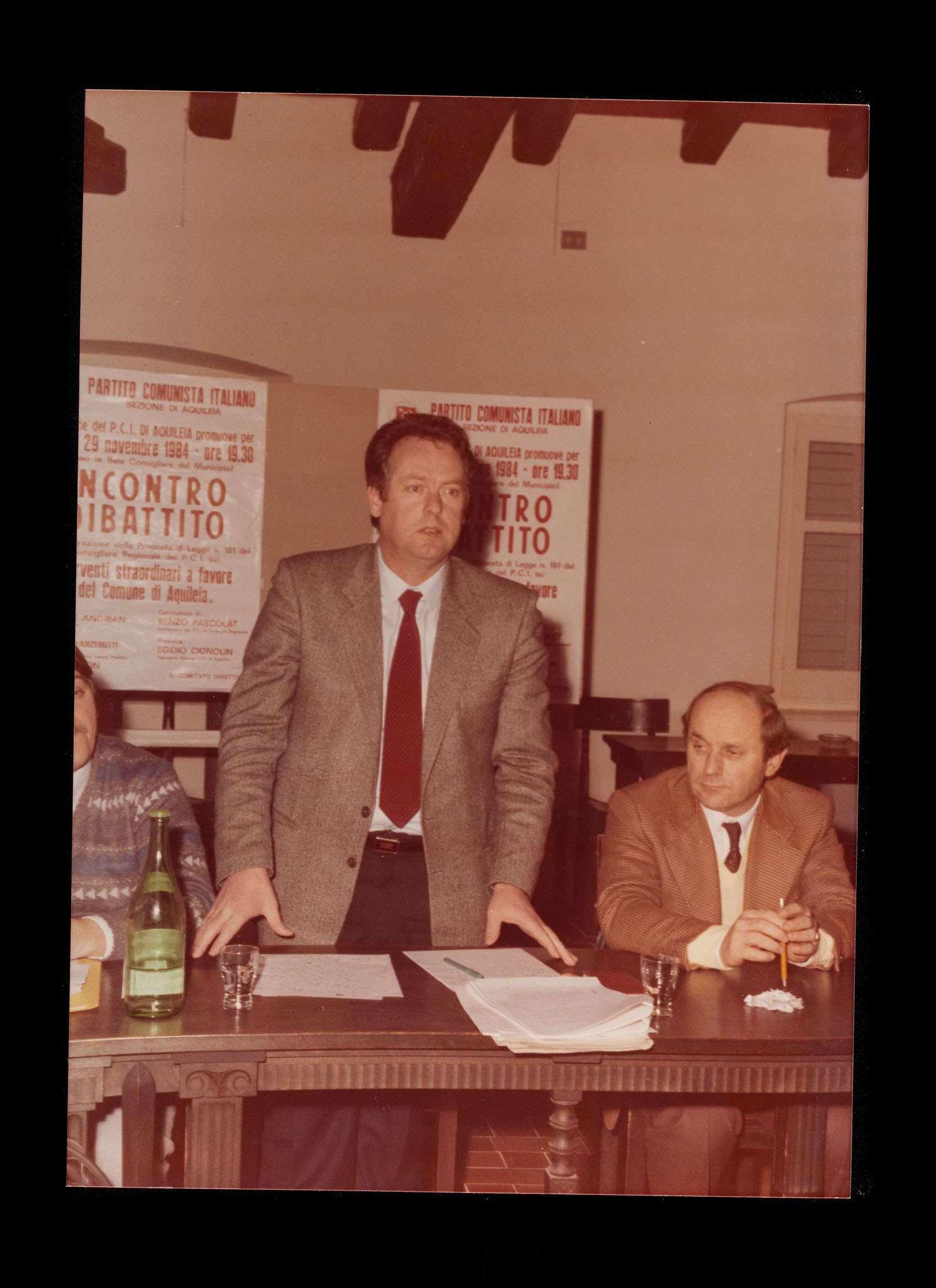 Assemblea pubblica in vista delle elezioni europee del 17 giugno 1984. Relatore il candidato Giorgio Rossetti. Intervento di Gastone Andrian