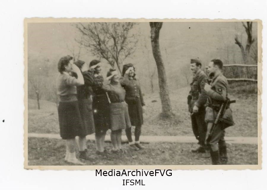Mario Lizzero "Andrea" e Eugenio Candoni "Sergio" in visita a una formazione appartenente ai Gruppi di Difesa della Donne