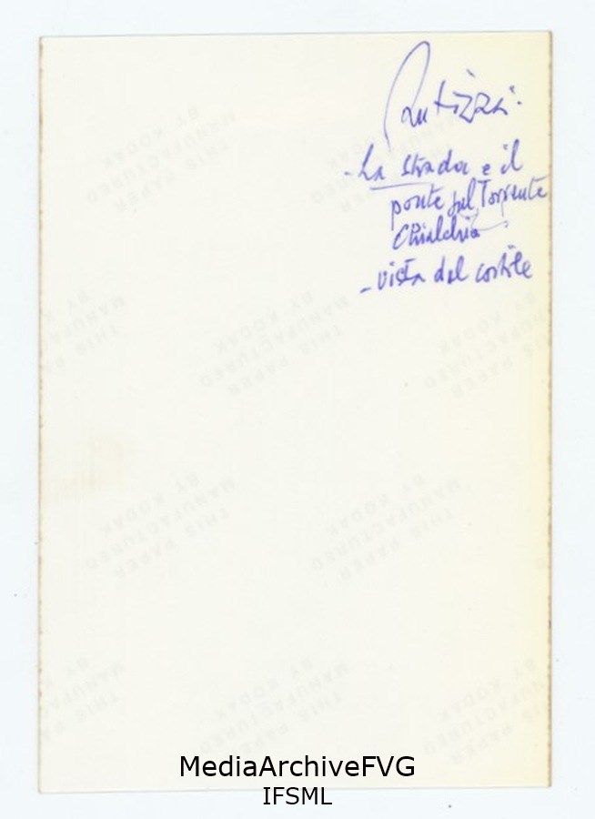 Rutizza: la strada e il ponte sul torrente Chiarchia visti dal cortile di un'abitazione probabilmente sede di formazioni partigiane durante la guerra di Liberazione