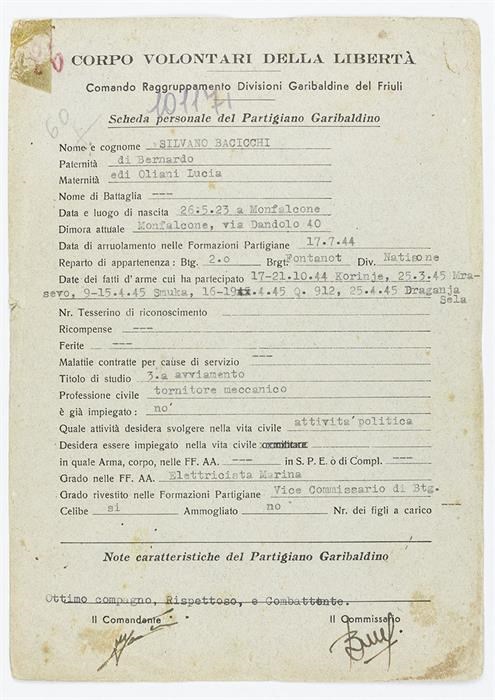 17-21 ottobre 1944 Korinje, 25 marzo 1945 Mrasevo, 9-15 aprile 1945 Smuka, 16-19 aprile 1945 Q. 912, 25 aprile 1945 Draganja Sela