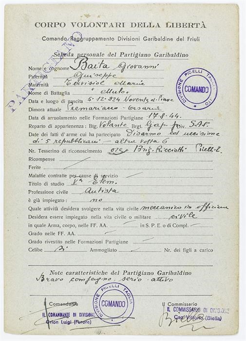 Scheda del partigianato