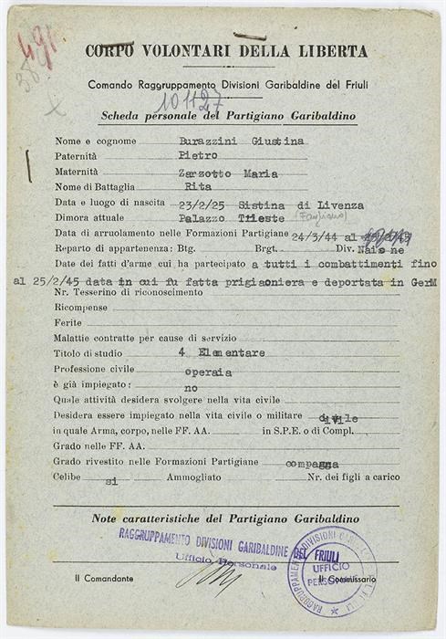 a tutti i combattimenti fino al 25/2/45 data in cui fu fatta prigioniera e deportata in Germ
