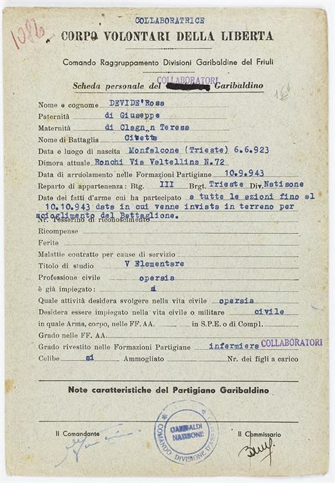 a tutte le azioni fino al 10.10.943 data in cui venne inviata in terreno per scioglimento del Battaglione.